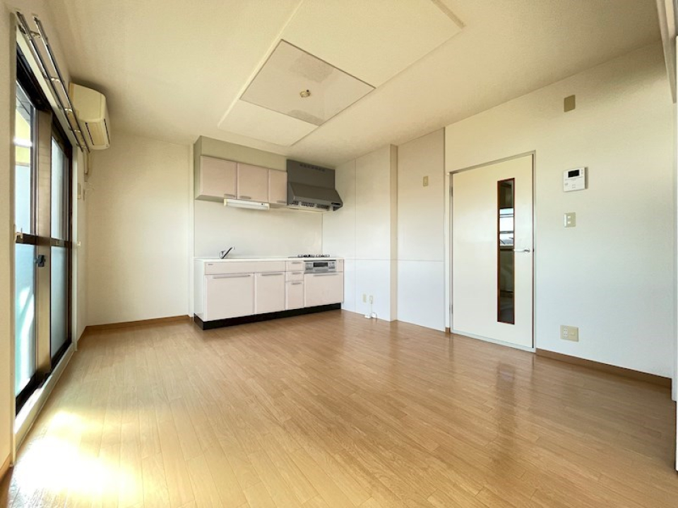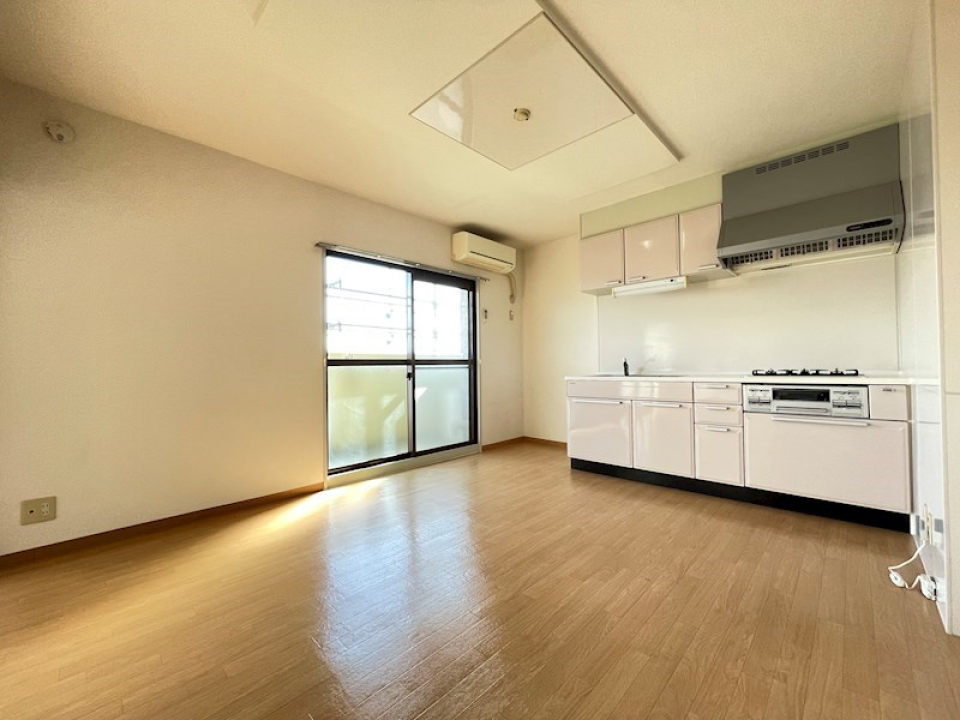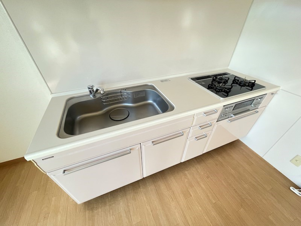 大きなカップボードも備え付けられており、入居当日からキッチンの稼働は心配ありません。