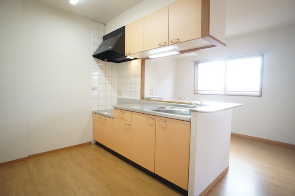キッチンも対面で会話しながら料理も話も弾みそう!ただし、ガスコンロは設置が必要です。