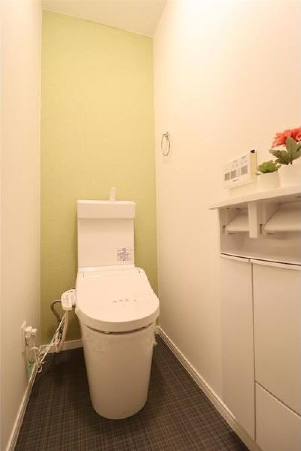 グレージュを基調とした中にもホワイトウッド調のヘリンボーンの床でしっかりとシャビーシックを演出しています。