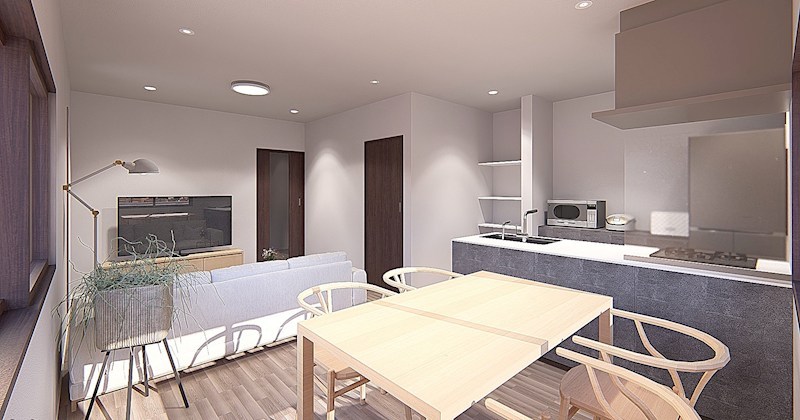 ダイニングテーブルと大きなソファを置いても動線がしっかりと取れる広さがあり、お子様が遊ぶスペースも十分に確保できそうです。