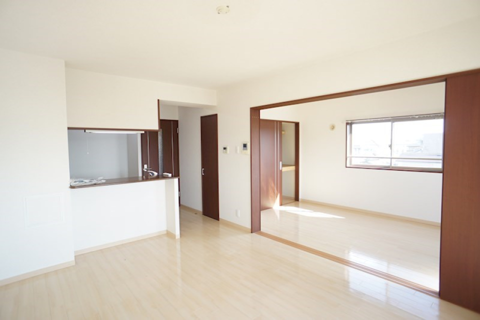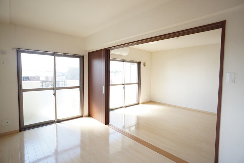 間取りは2LDKのお部屋ですが、LDKと洋室が4枚のスライド式扉で区切られているので、広々の1LDK+寝室のような使い方もでき、機能性も抜群なんです!