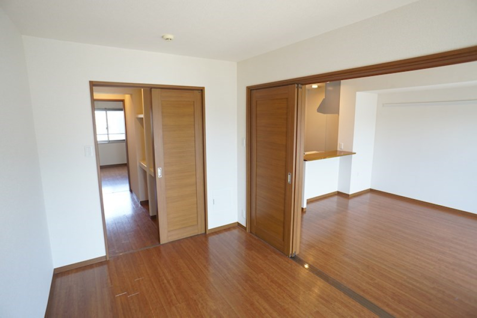 内装はダイニングと洋室を区切る3枚引き戸が特徴的。