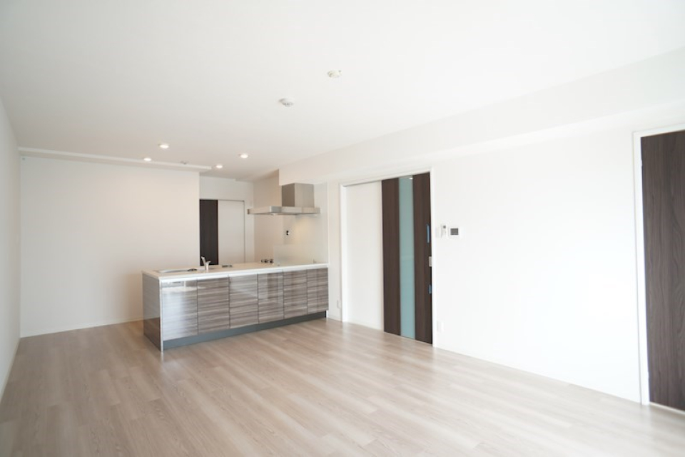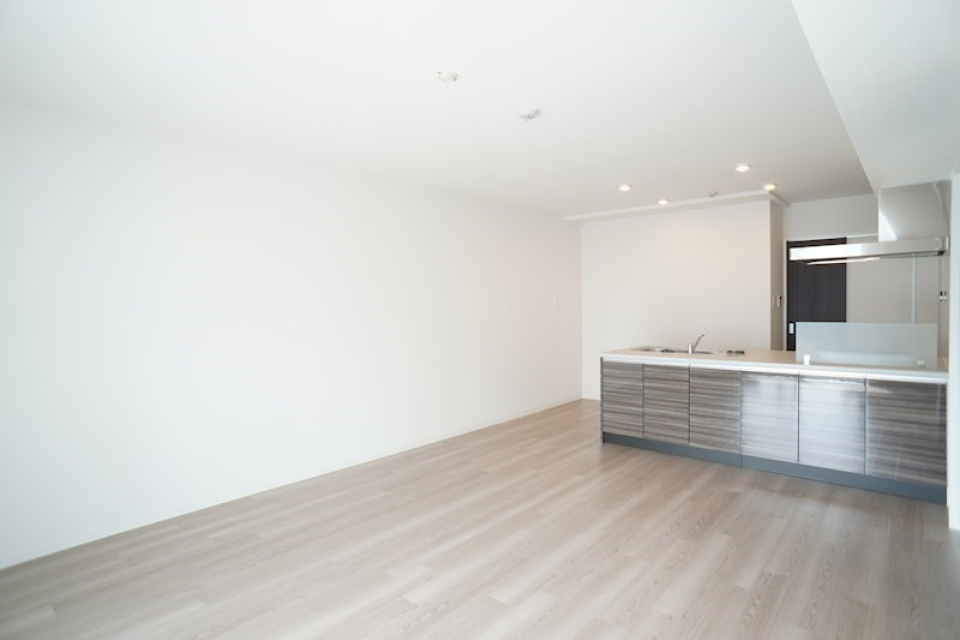 お部屋の主役となる18.3帖のLDKは、まさに圧巻の広さ。 対面キッチンに立てば、リビングでくつろぐ家族の様子が自然と目に入り、会話も弾みますね。
