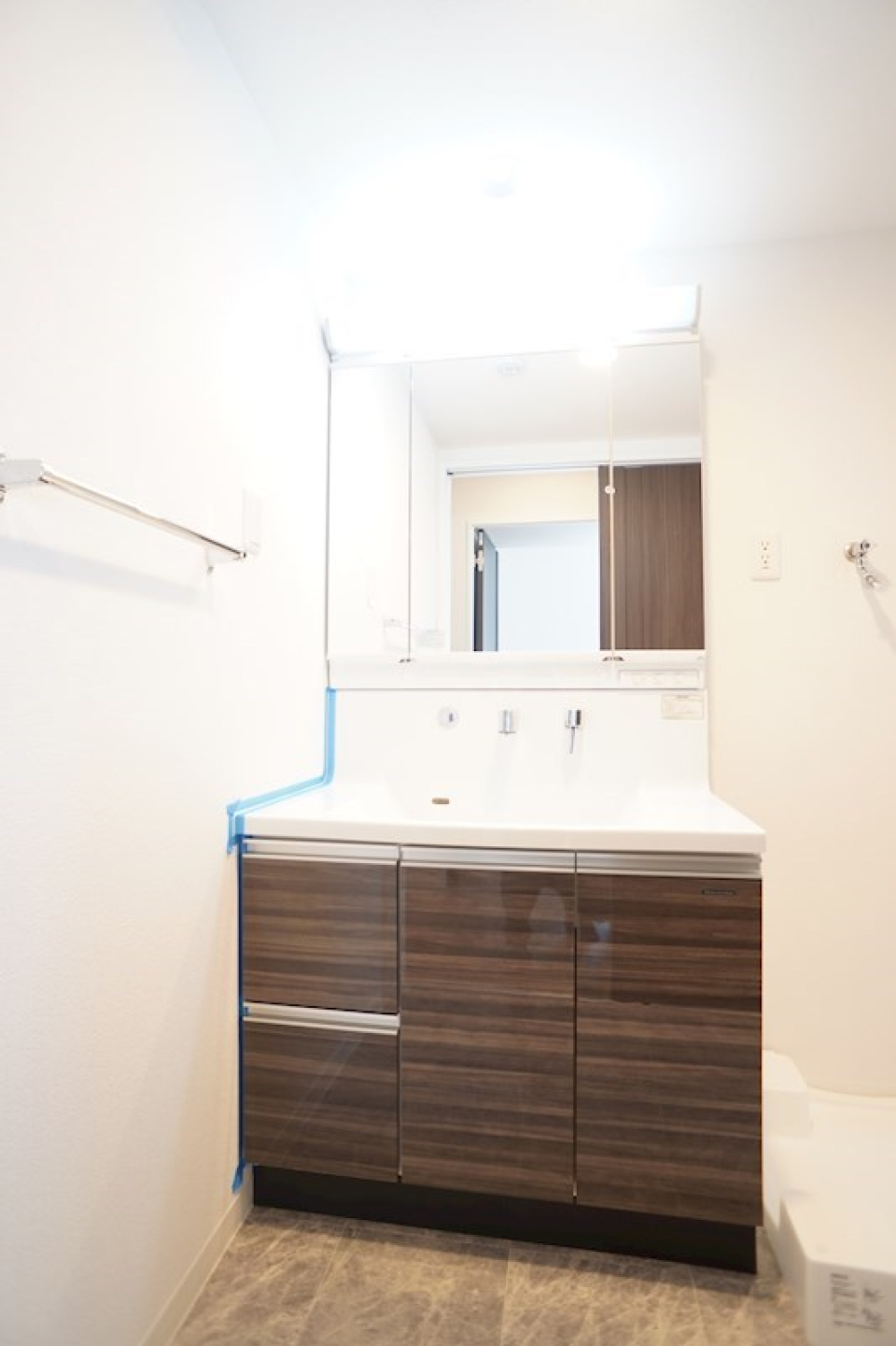 水回りには三面鏡の洗面化粧台や浴室乾燥など、家事の負担を減らしてくれる最新設備が整っています 。
