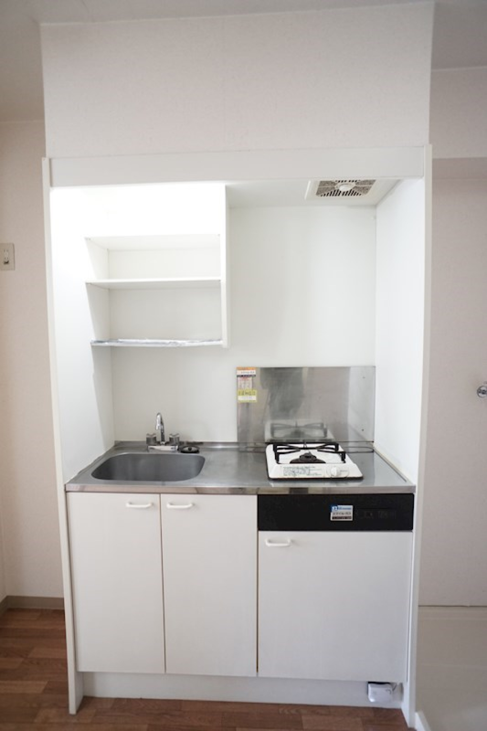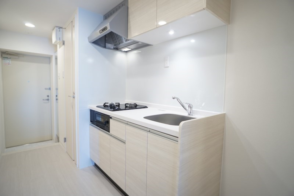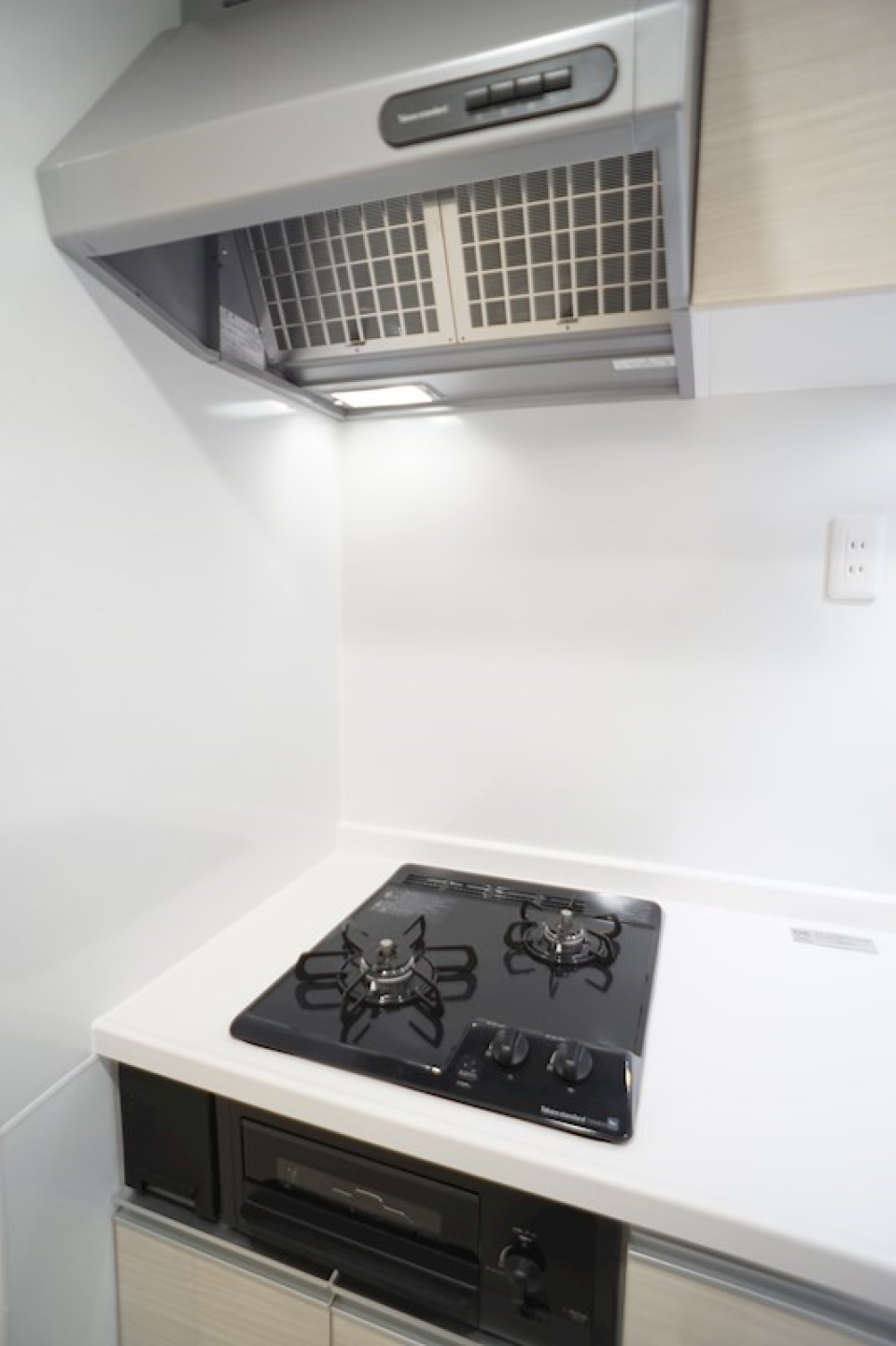 2口のコンロが付いたキッチン。