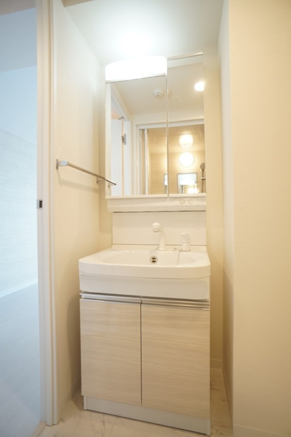 水回りには三面鏡の洗面化粧台や浴室乾燥など、家事の負担を減らしてくれる最新設備が整っています 。