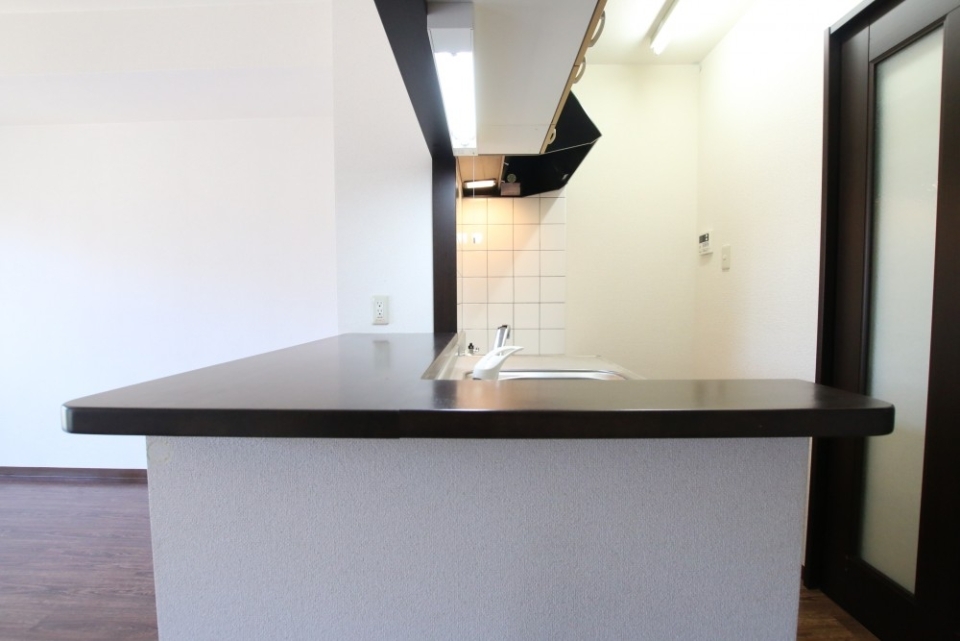 L字型の対面キッチンは、お子さんの様子を見ながらお料理ができるので子育て世代にも安心です。