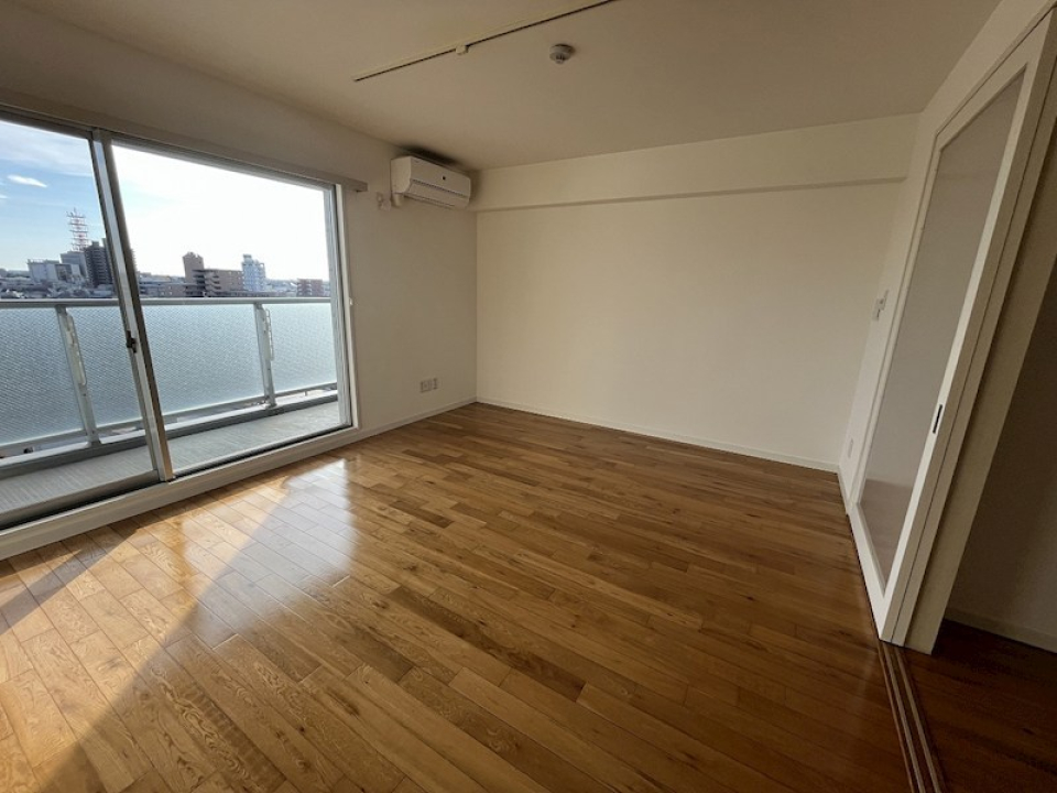 お部屋は7階の角住戸で、南向きのバルコニーから明るい光が差し込みます 。