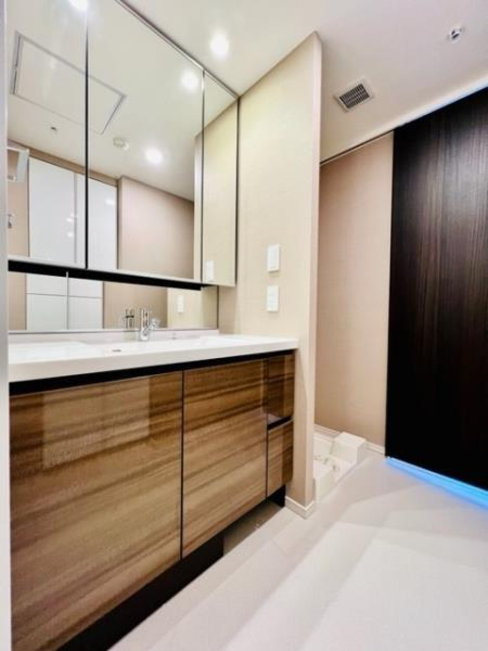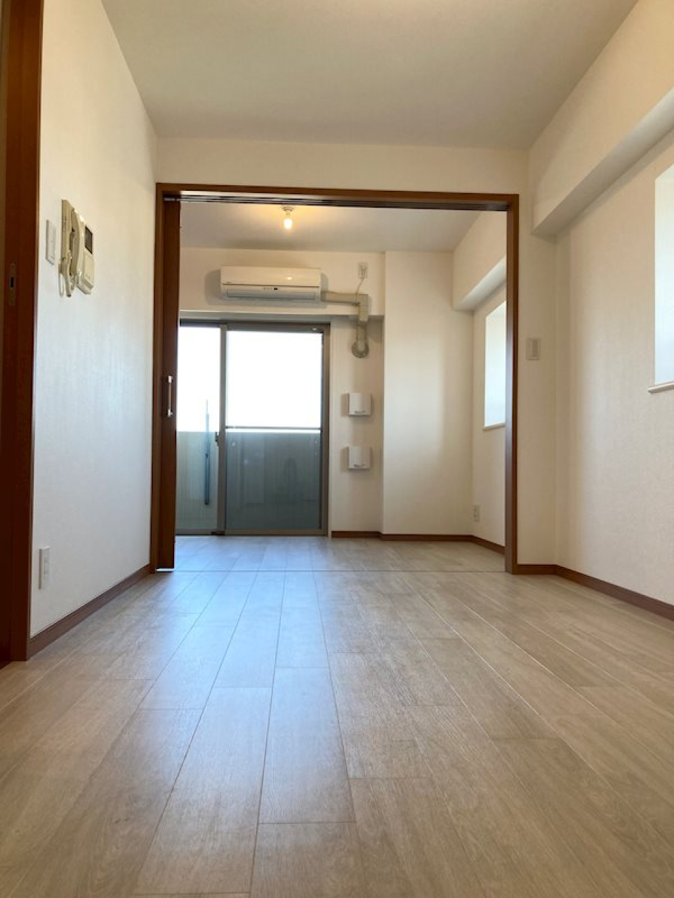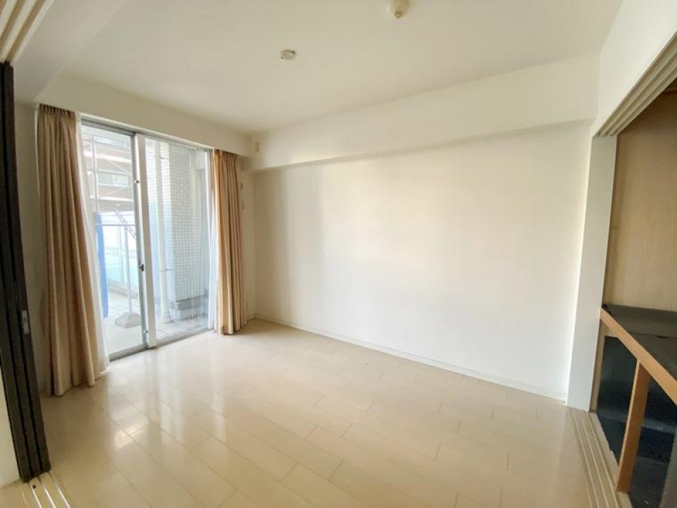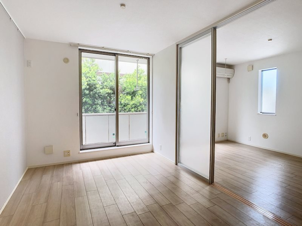 12.4帖のLDKと4.8帖のベッドルームからなる1LDKですが、普段は引き戸を開いて17.2帖の広々ワンルームとして使うのも良さそう。
