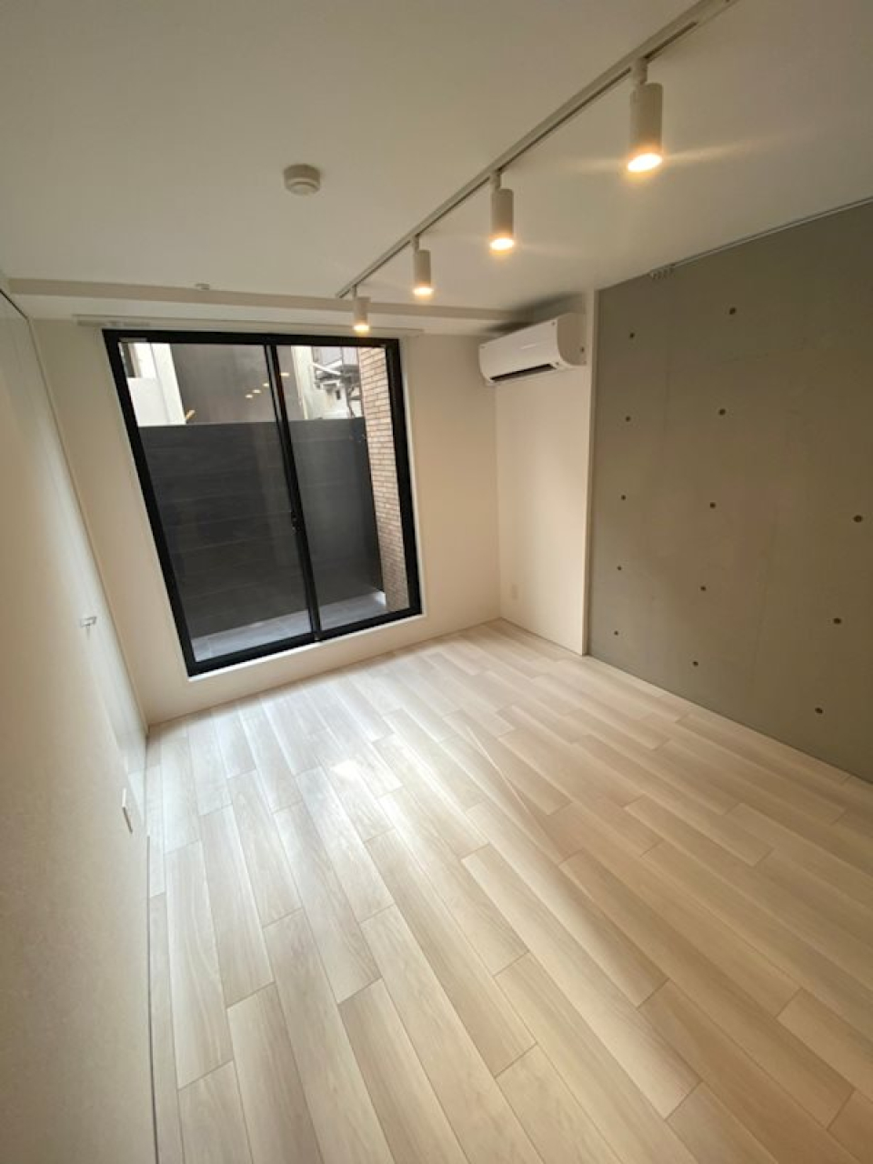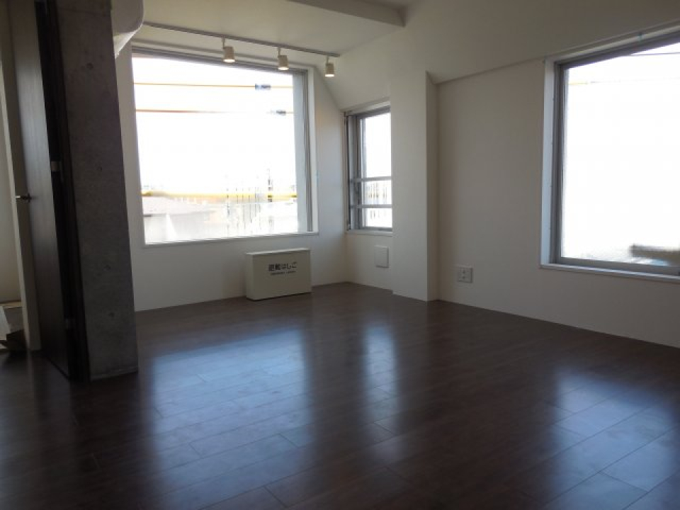 コンクリートの無骨な空間に、南向きの2つの窓から差し込む日差しが温かさをプラスしています。