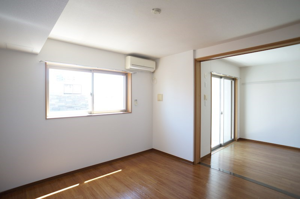 6.0帖の洋室が2つと8.0帖のダイニングキッチンがあり、自分でこの建物らしい世界観をインテリアにも落とし込めそうな寛容な空間です。