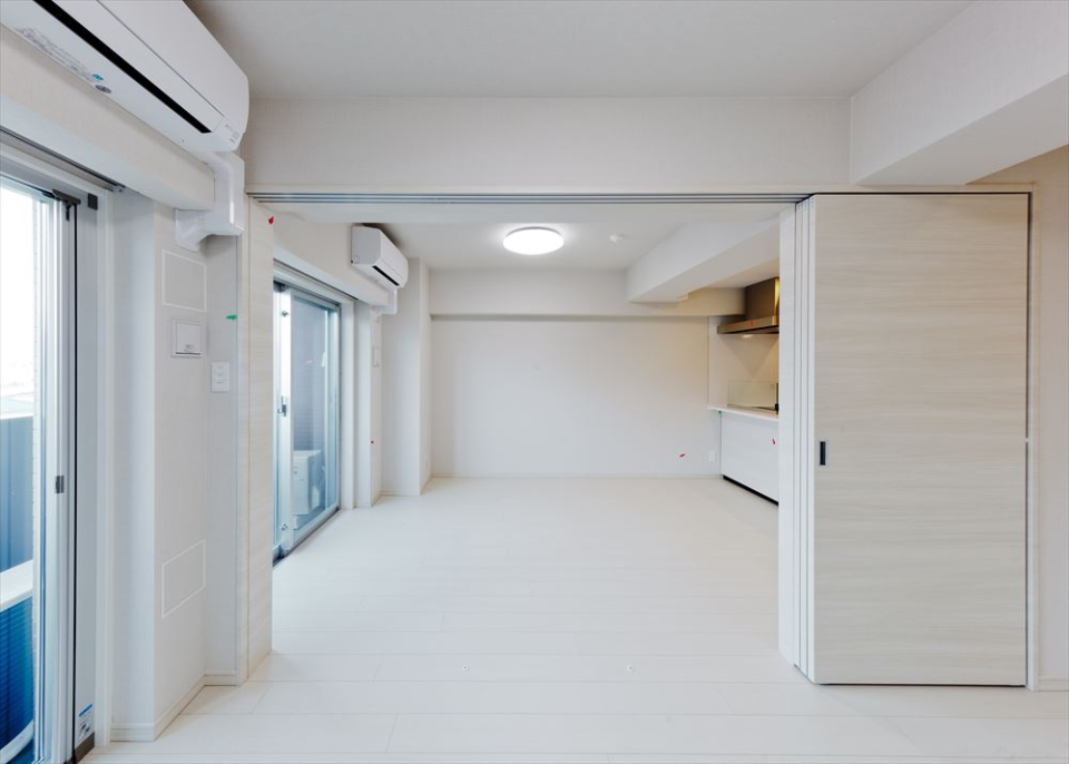 開けると広い空間に。プライベートな空間が欲しい時は扉を閉めて空間を区切る。
