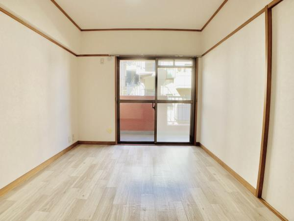 桜カラーの外壁がほんのりしていて可愛い建物にあるお部屋です。