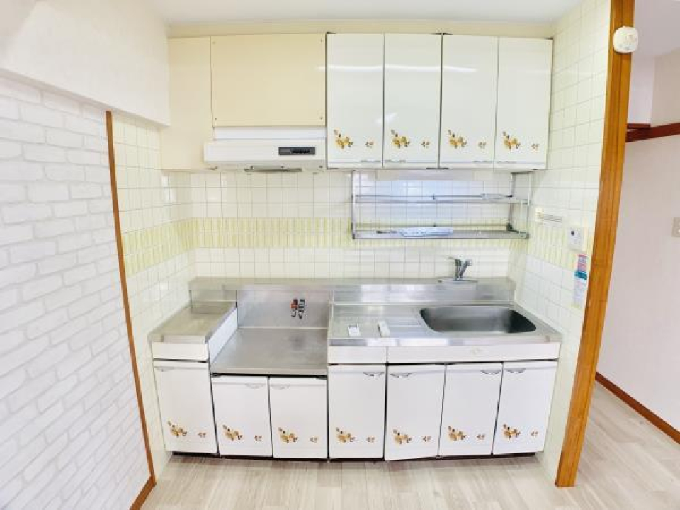 キッチンは2口のガスコンロが設置されています。