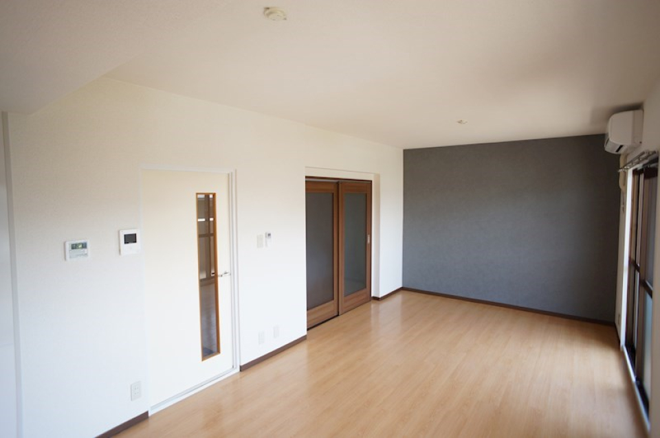4.2帖の洋室に5.7帖のダイニングキッチンがあり、可動式のスライドドアでこの2つの空間を区切ることができます・