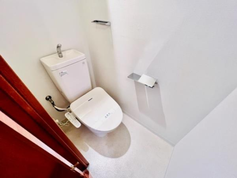 洗面台とトイレ、洗濯機は同じ部屋、浴室は別に設置されています。