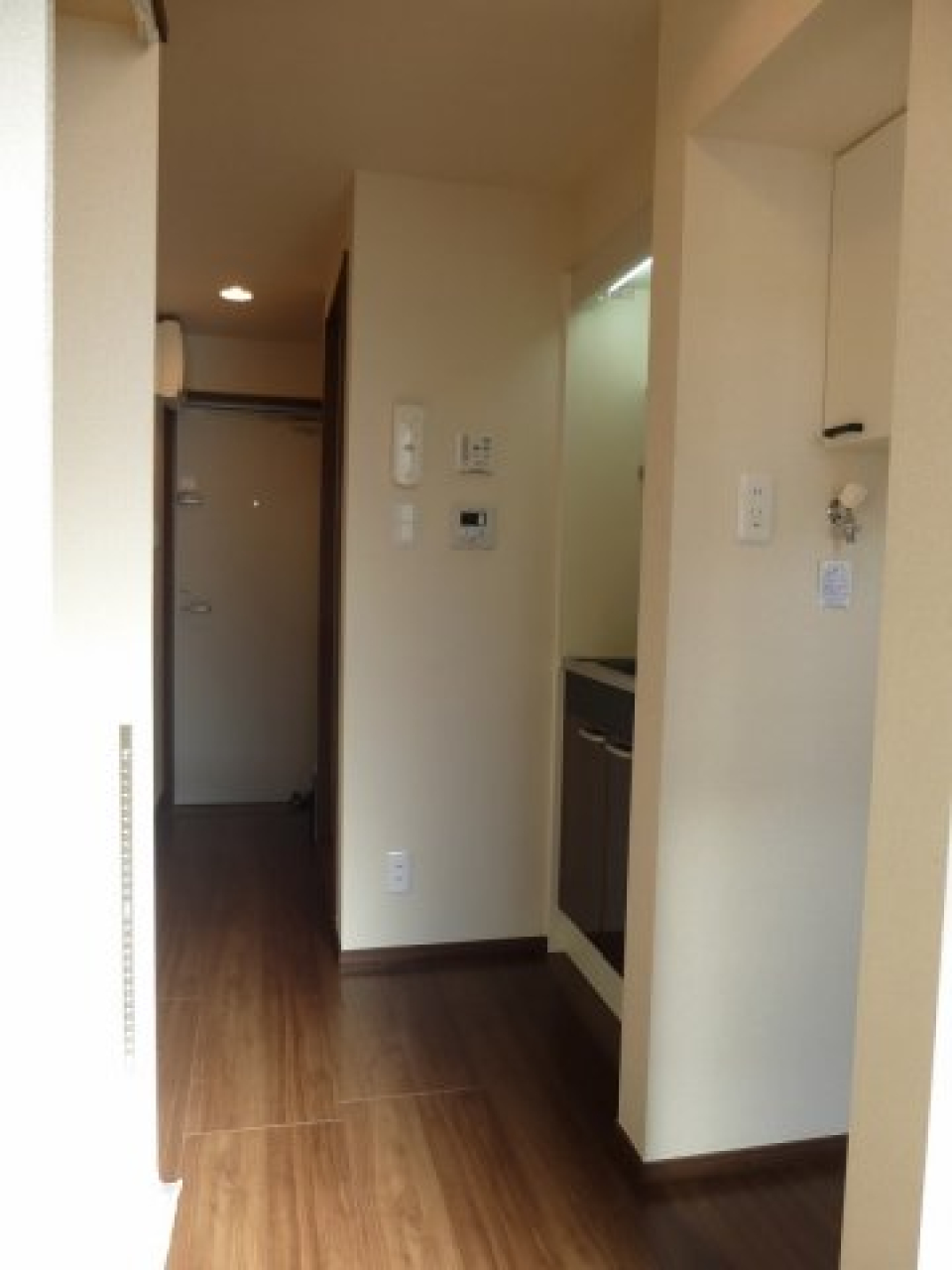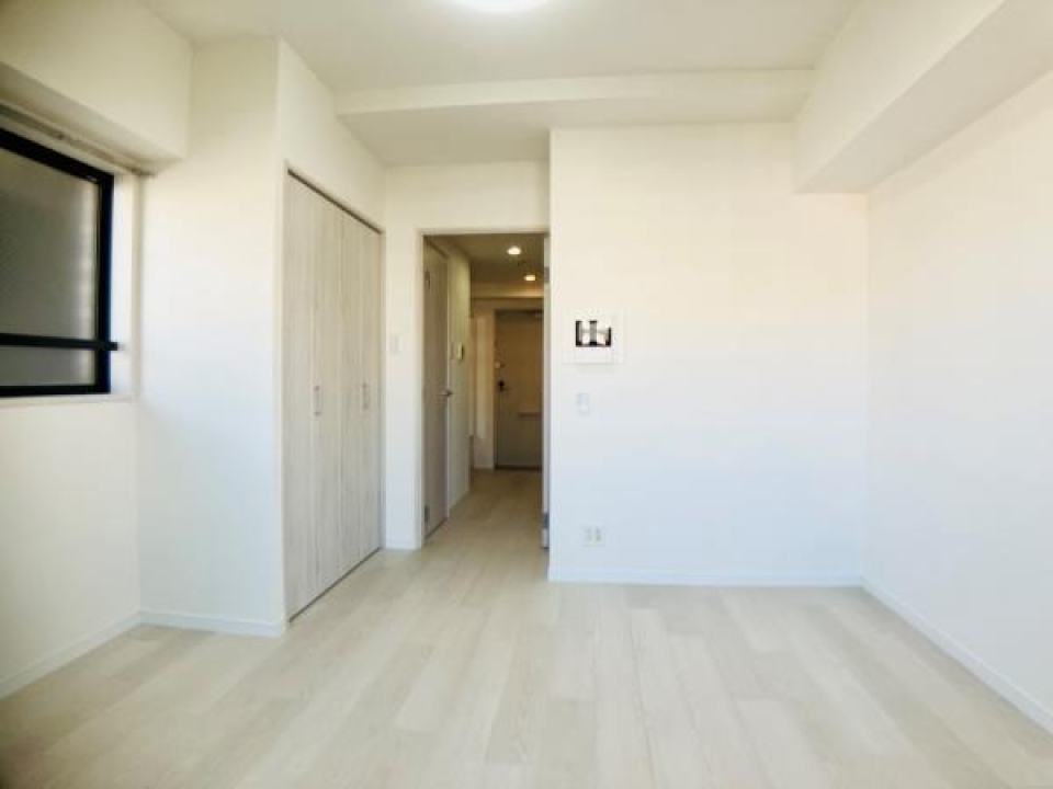 1人暮らしにはぴったりのお部屋。内装もシンプルなフローリングと壁紙で癖のないものになっています。