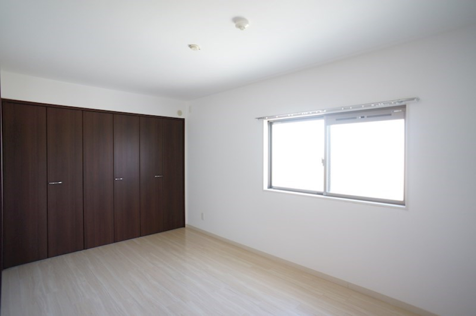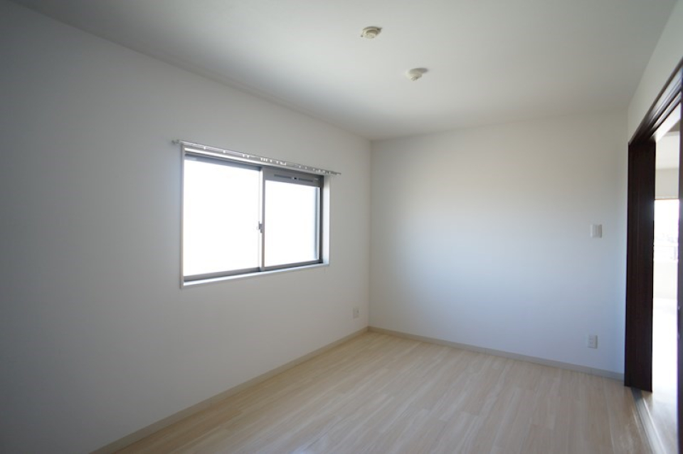 洋室はゆとりのある大きさの窓を通してバルコニーに出ることができます。窓が大きいので、明るい自然光を取り入れることができます。朝起きたら伸びをして、新鮮な空気を取り込みにいきましょう。