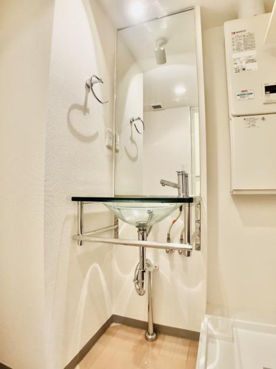洗面台、浴室、トイレは独立して設置されています。玄関にある大きな鏡が出発前に今日のコーディネートをチェックするのにぴったりですね!