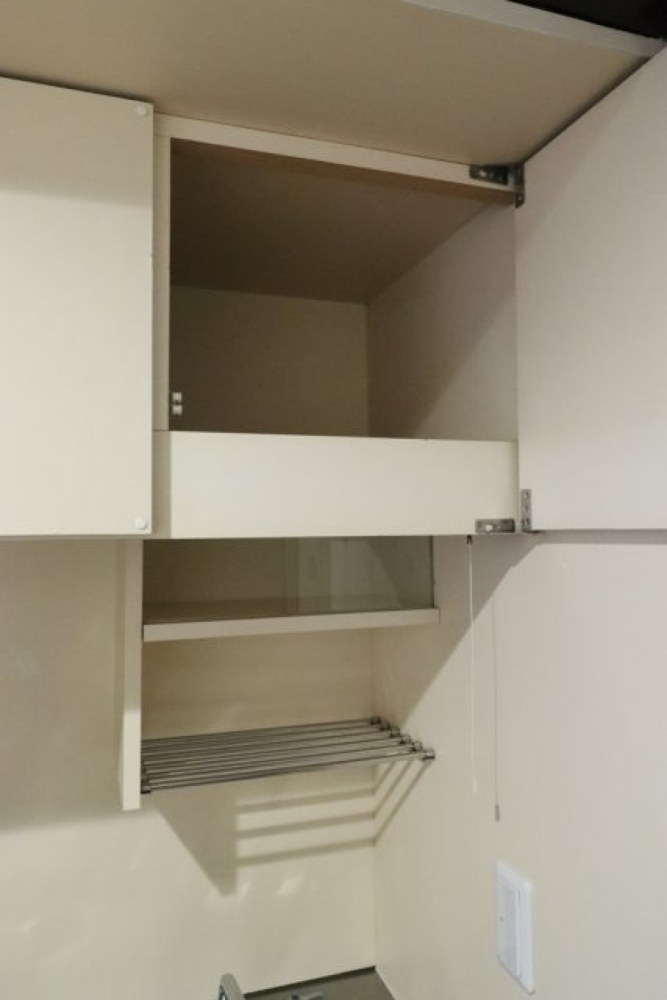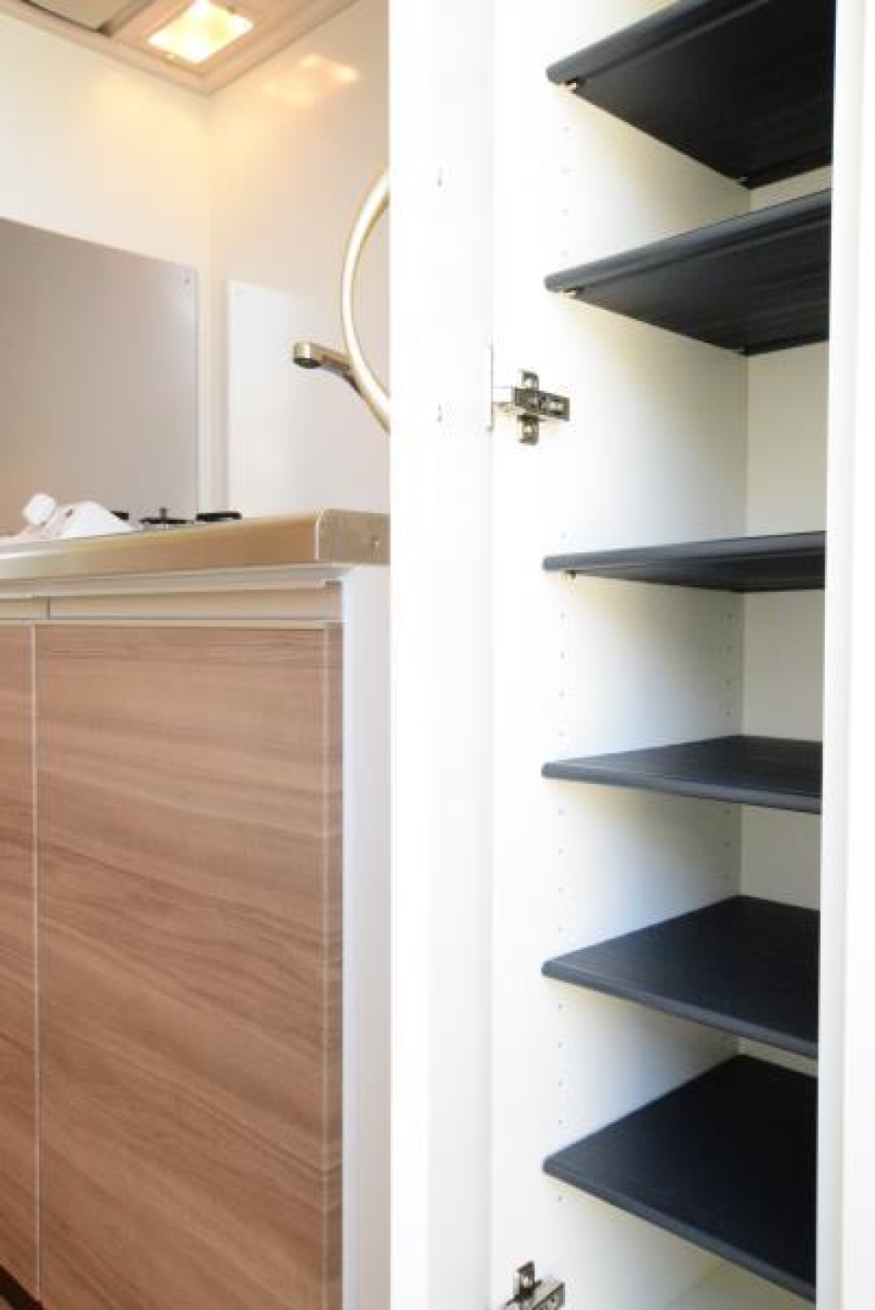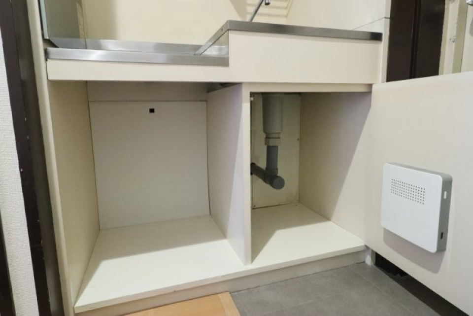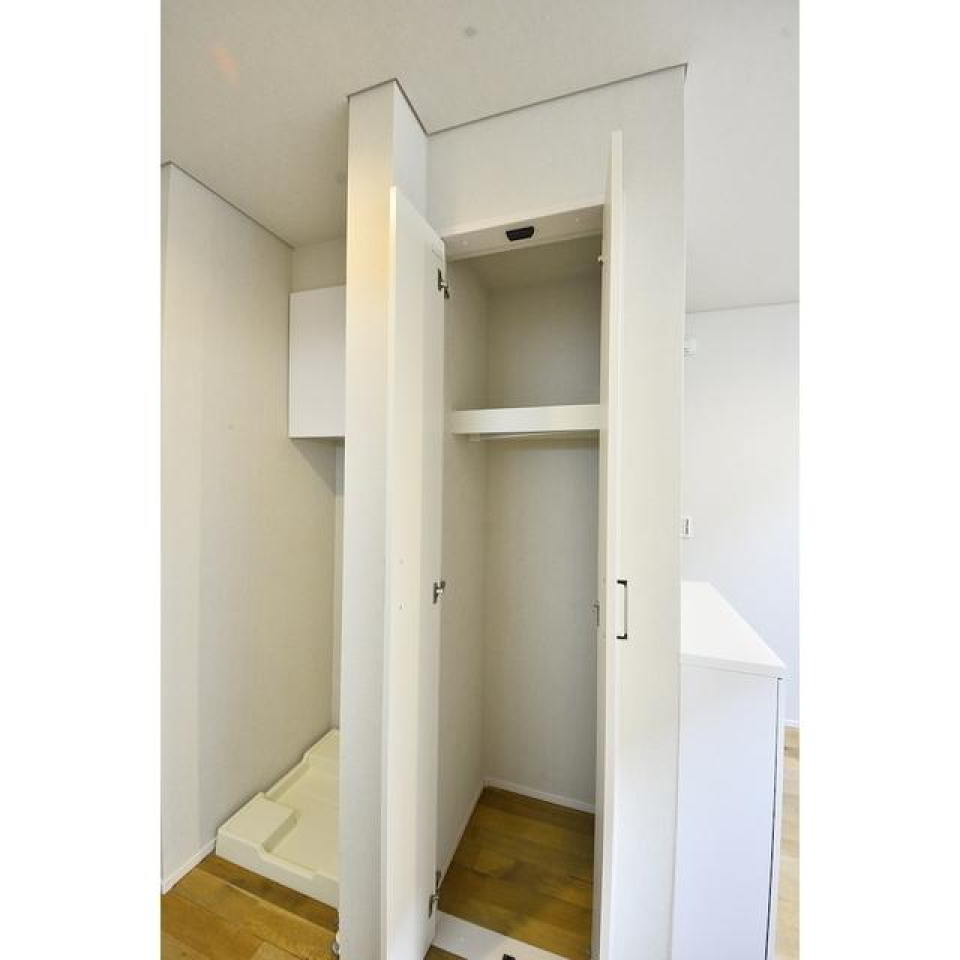 洗濯機の横、居室、キッチンの上など、スペースごとに収納があるので荷物はすっきりしまえそうです。