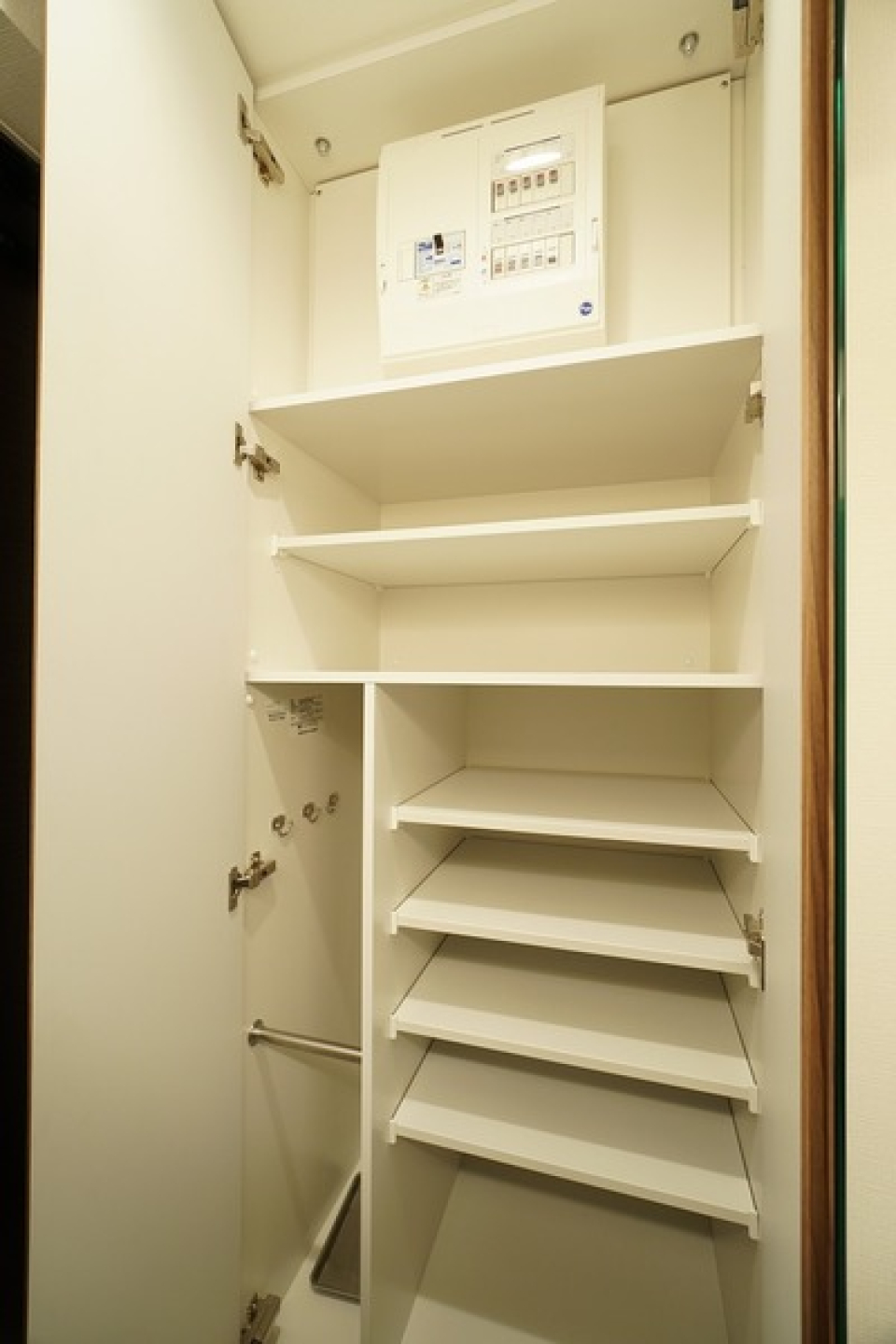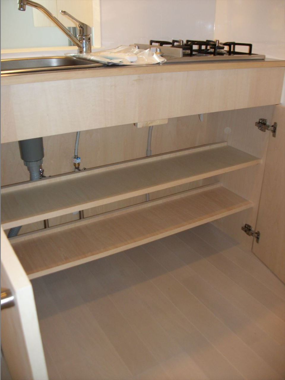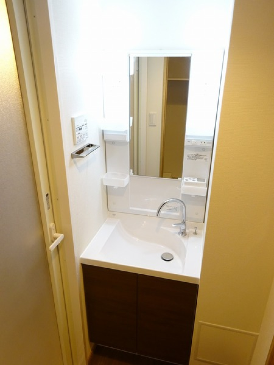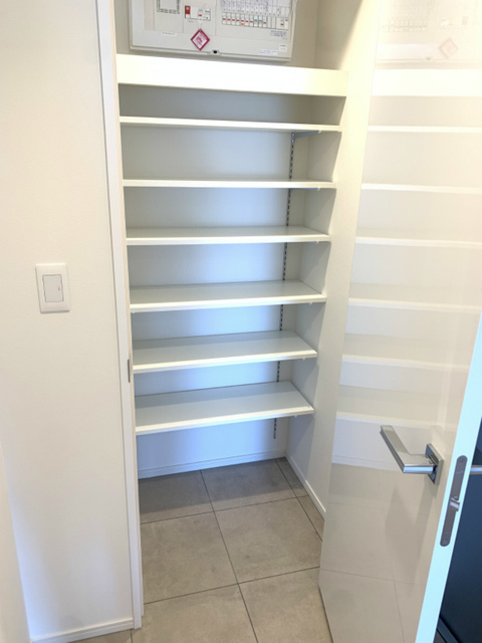 洗濯機の横、居室、キッチンの上など、スペースごとに収納があるので荷物はすっきりしまえそうです。
