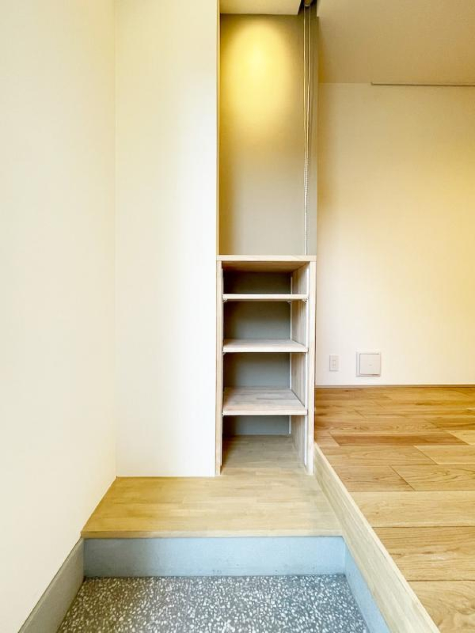1階が玄関、2階がお部屋というつくりになっているので、居住スペースをひろびろと使えます。