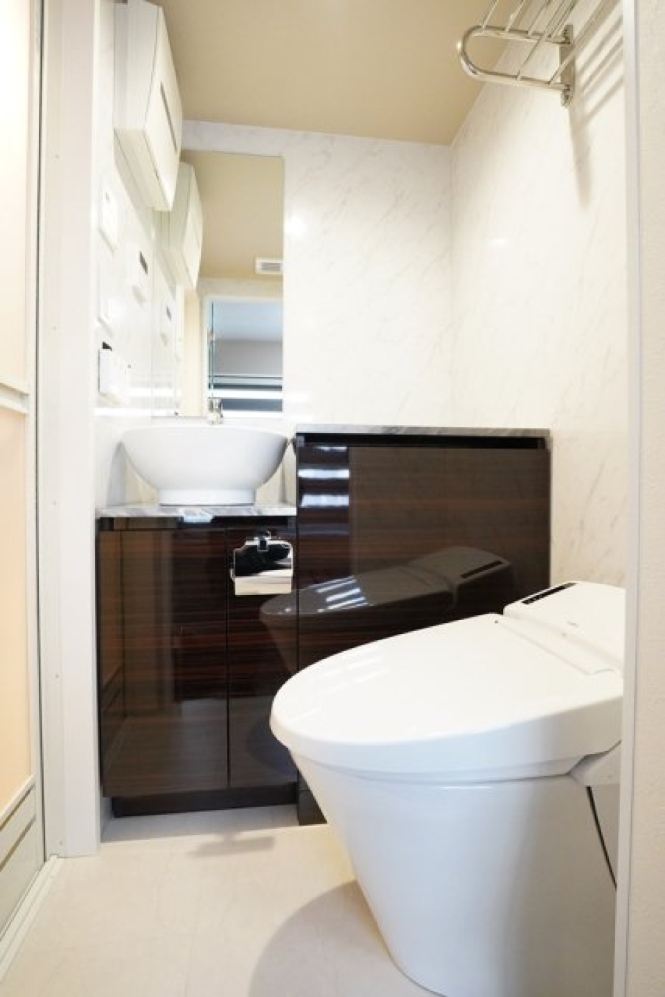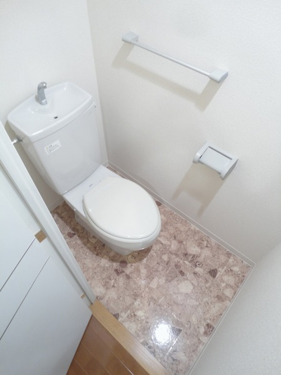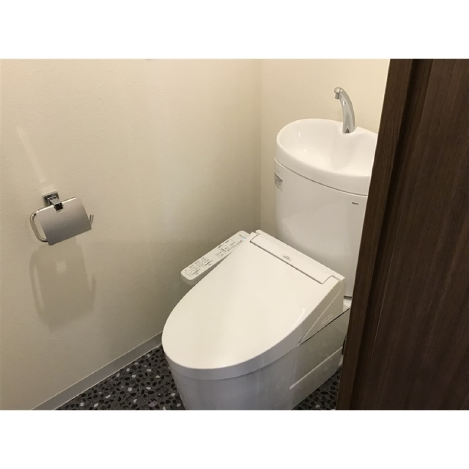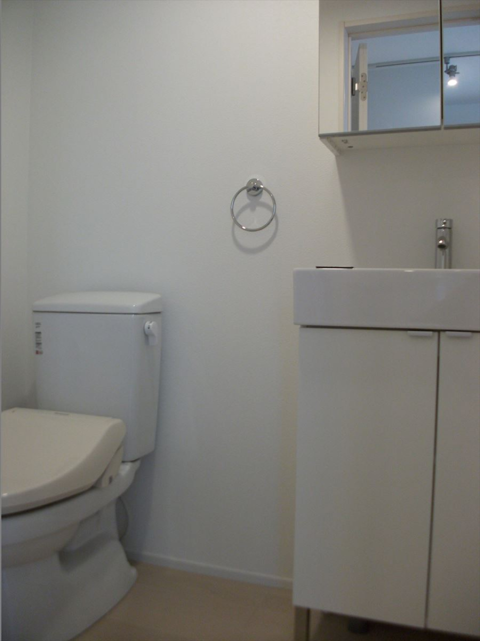 トイレは洗面所と同じ空間なのが少し気になりますが、掃除がしやすいというメリットもあります。