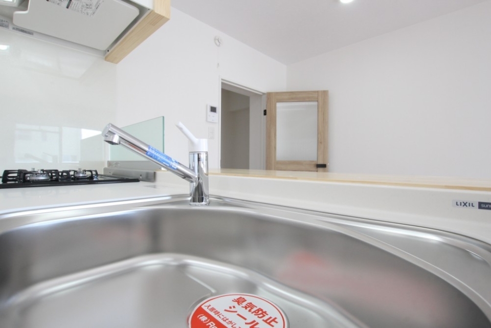 リノベーションによって蘇ったこのお部屋は水回りは刷新されています。キッチンがピカピカなのはリノベーションしたての特権ですよ!