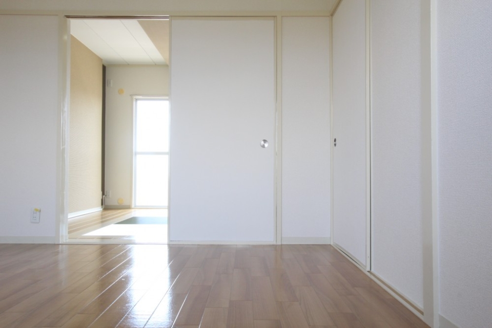 LDKのお隣の洋室には壁一面のクローゼットがあり、たくさん収納できそうです。