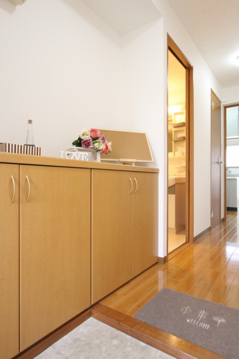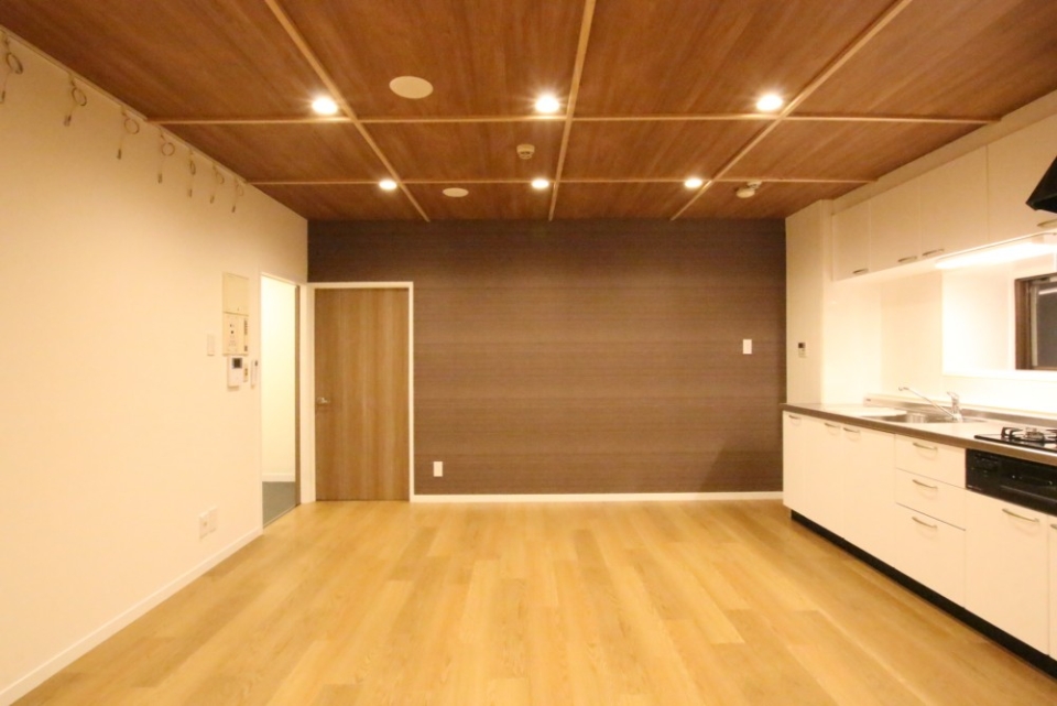 既設の照明器具やフローリングの木目がとっても可愛いらしい内装になっています♪