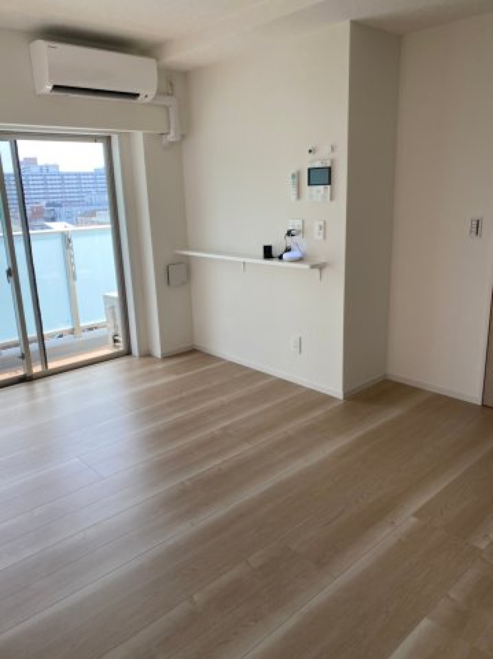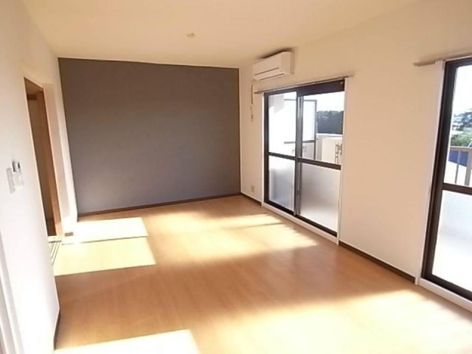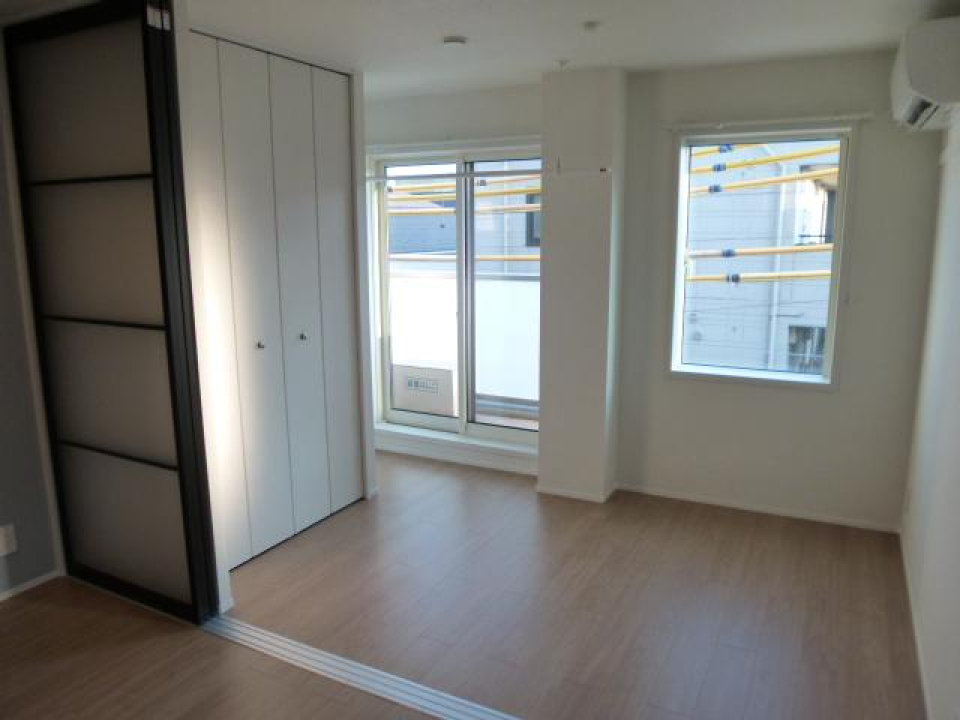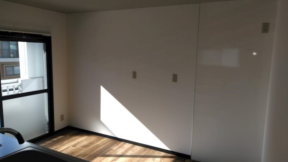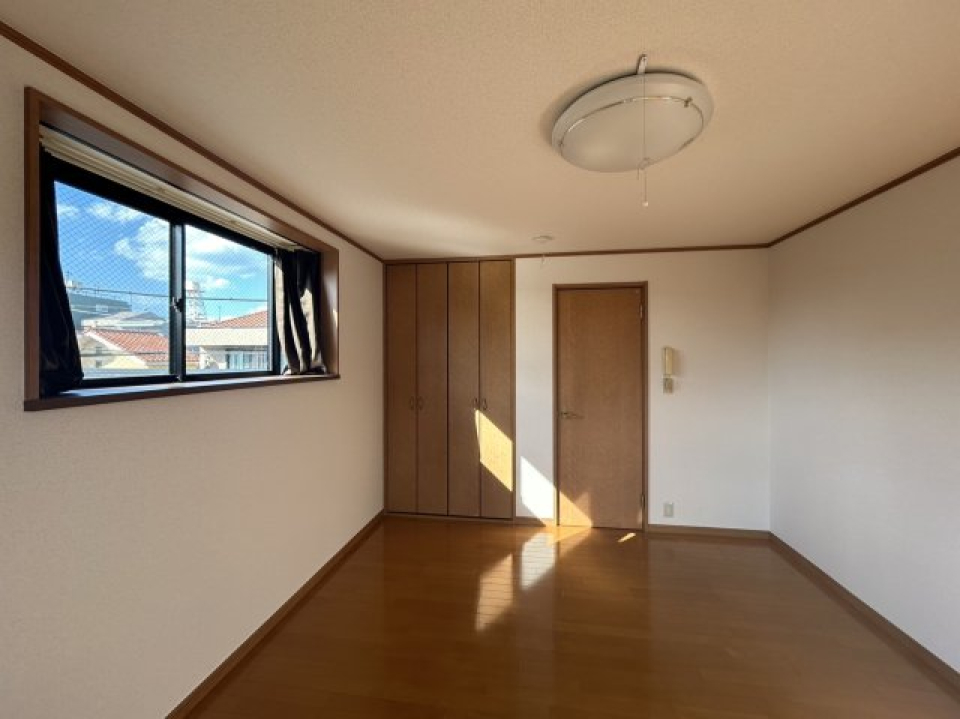 南向きに位置する横長の窓から光がたっぷり入ってきて、お部屋中に広がります。