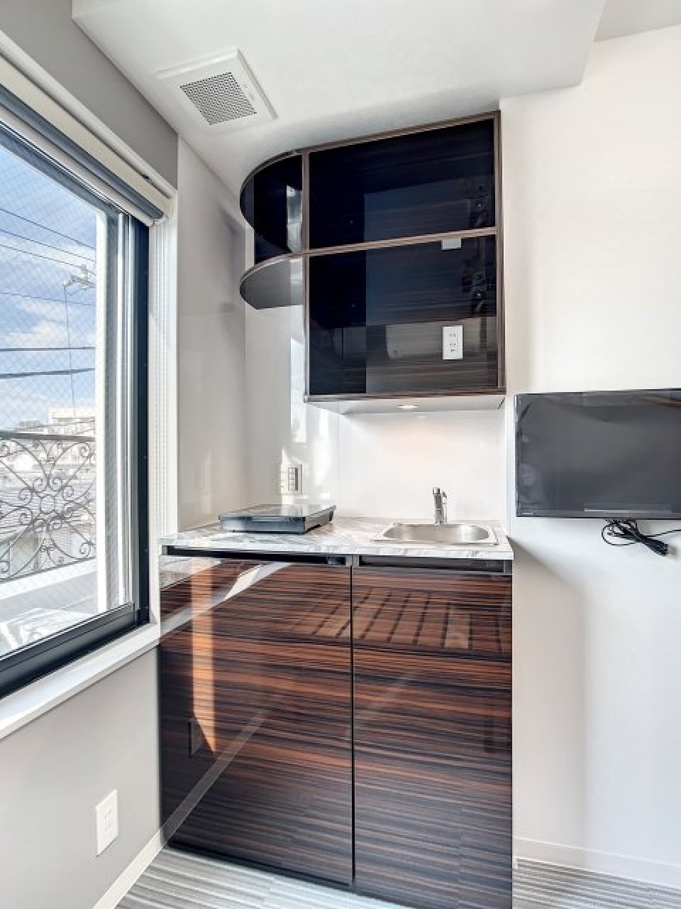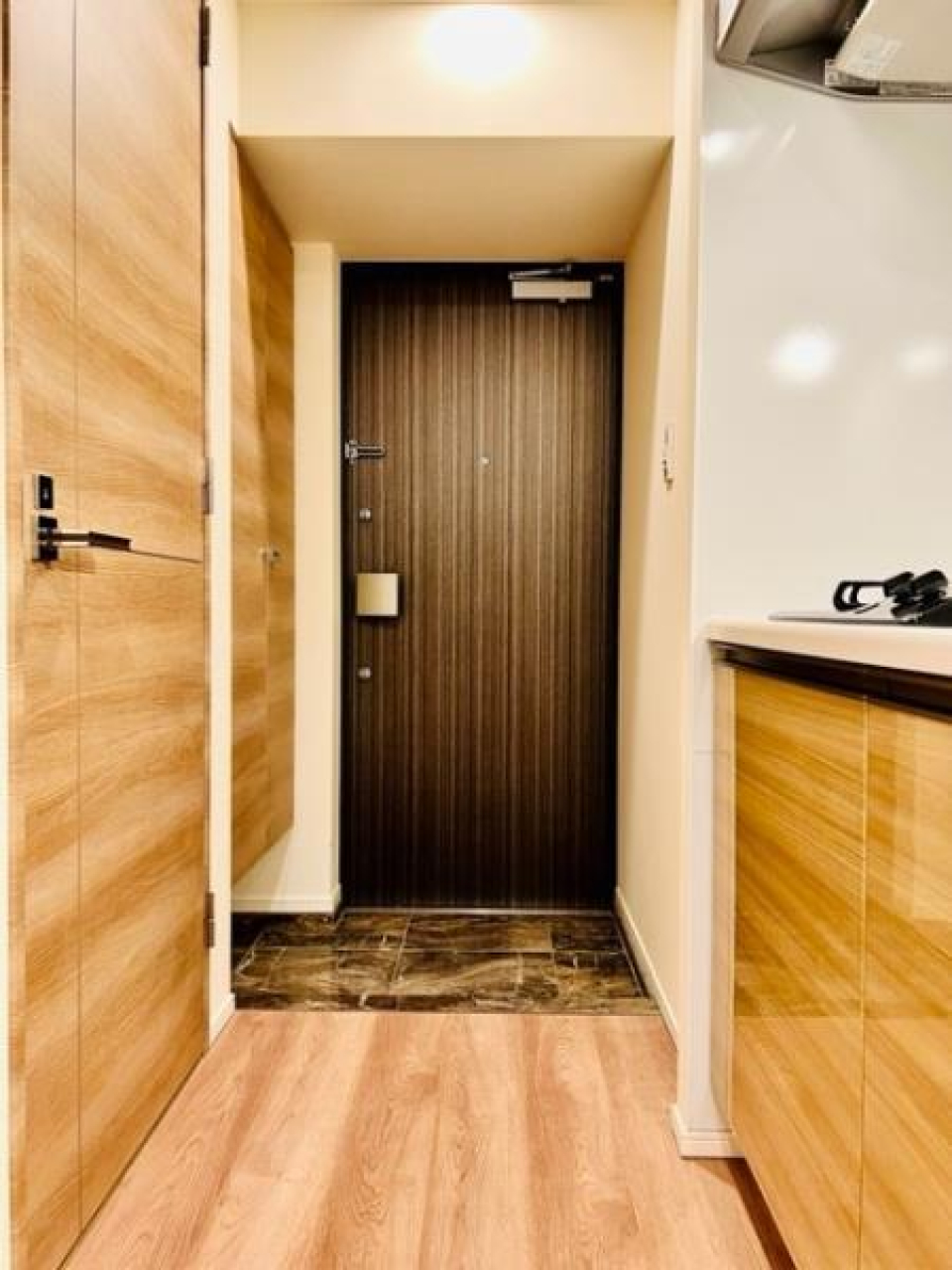 お部屋は、高級感がありつつも木目のあたたかみでほっとする1LDK。