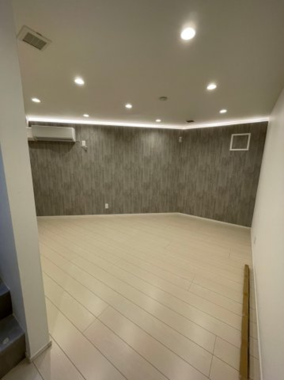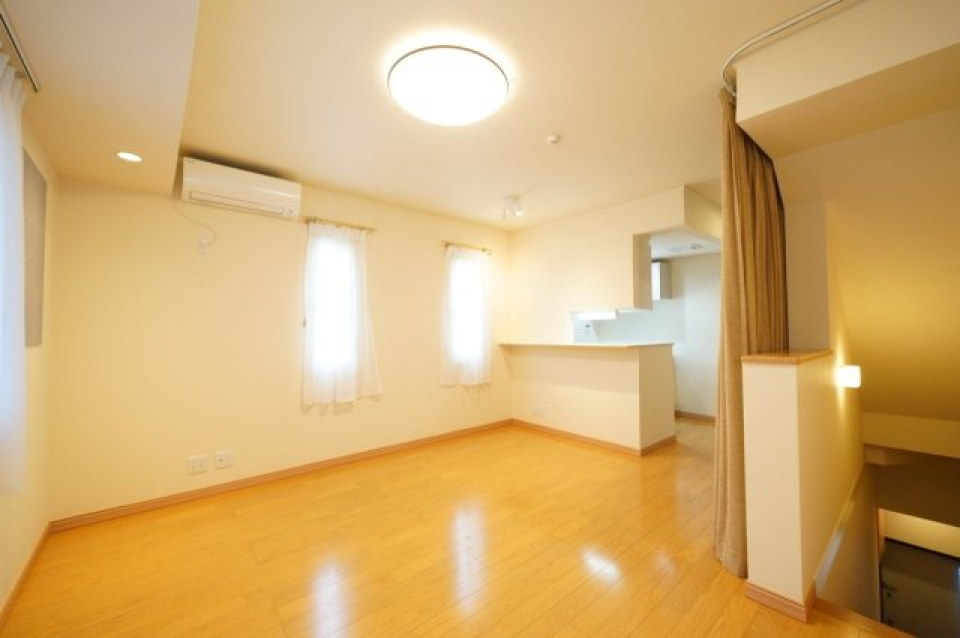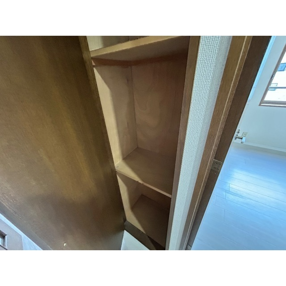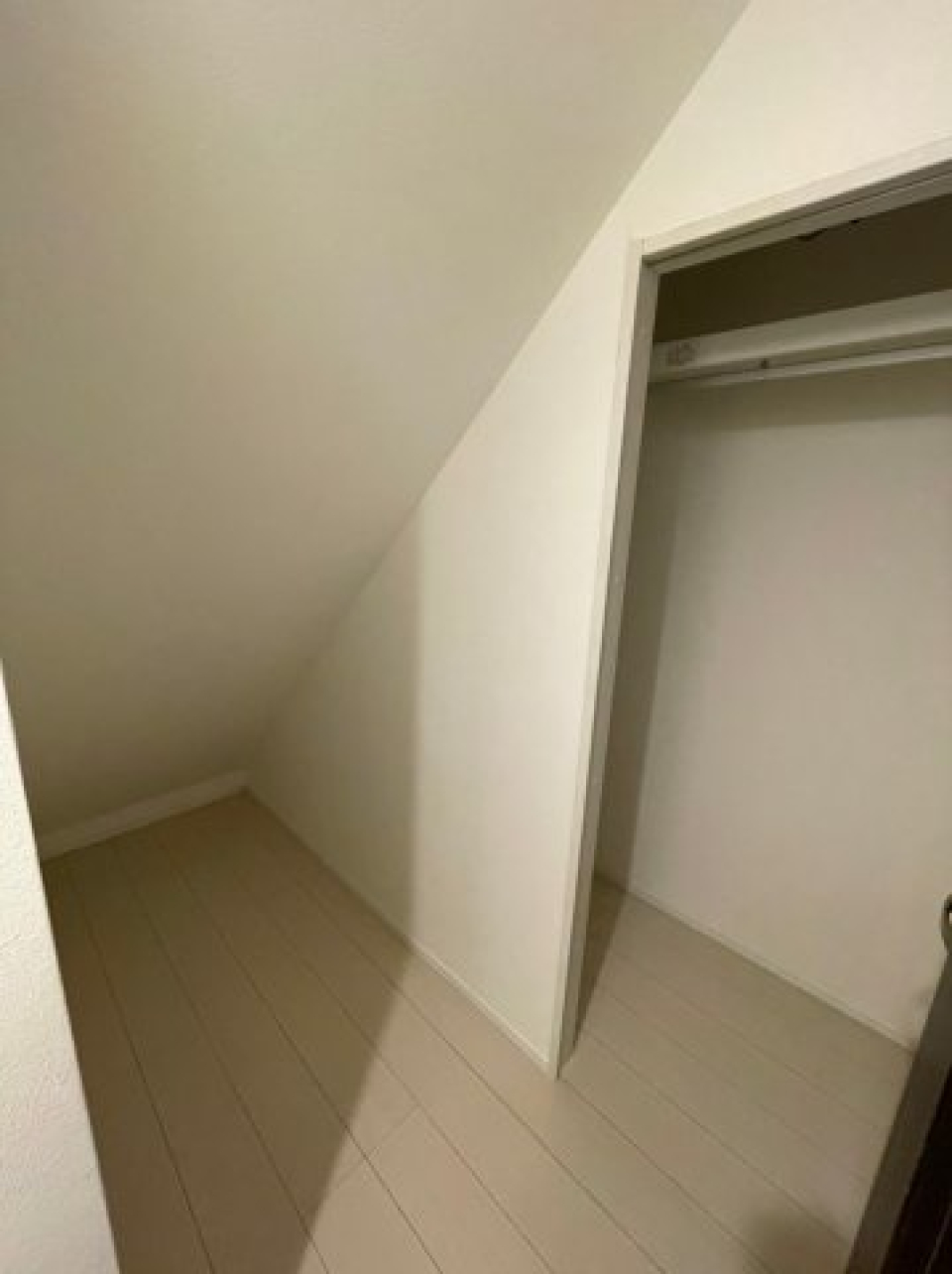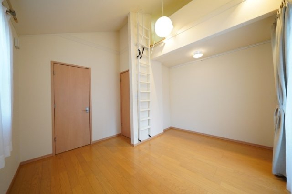え付けのクローゼット等はないので、空間下のスペースにはラックや収納ケースなどを並べるのが良さそうです。階段部分にもちょっとした小物を置けます。