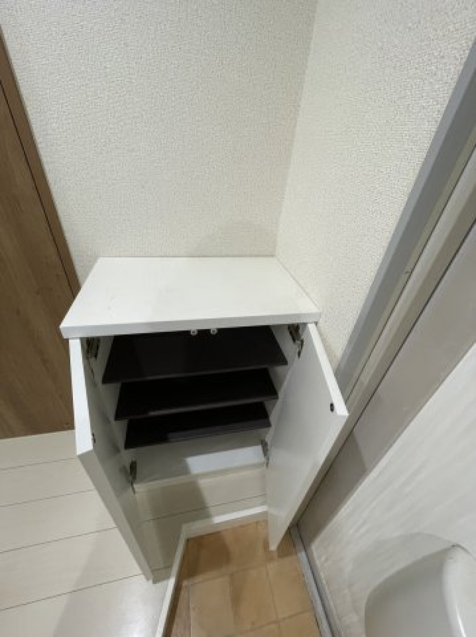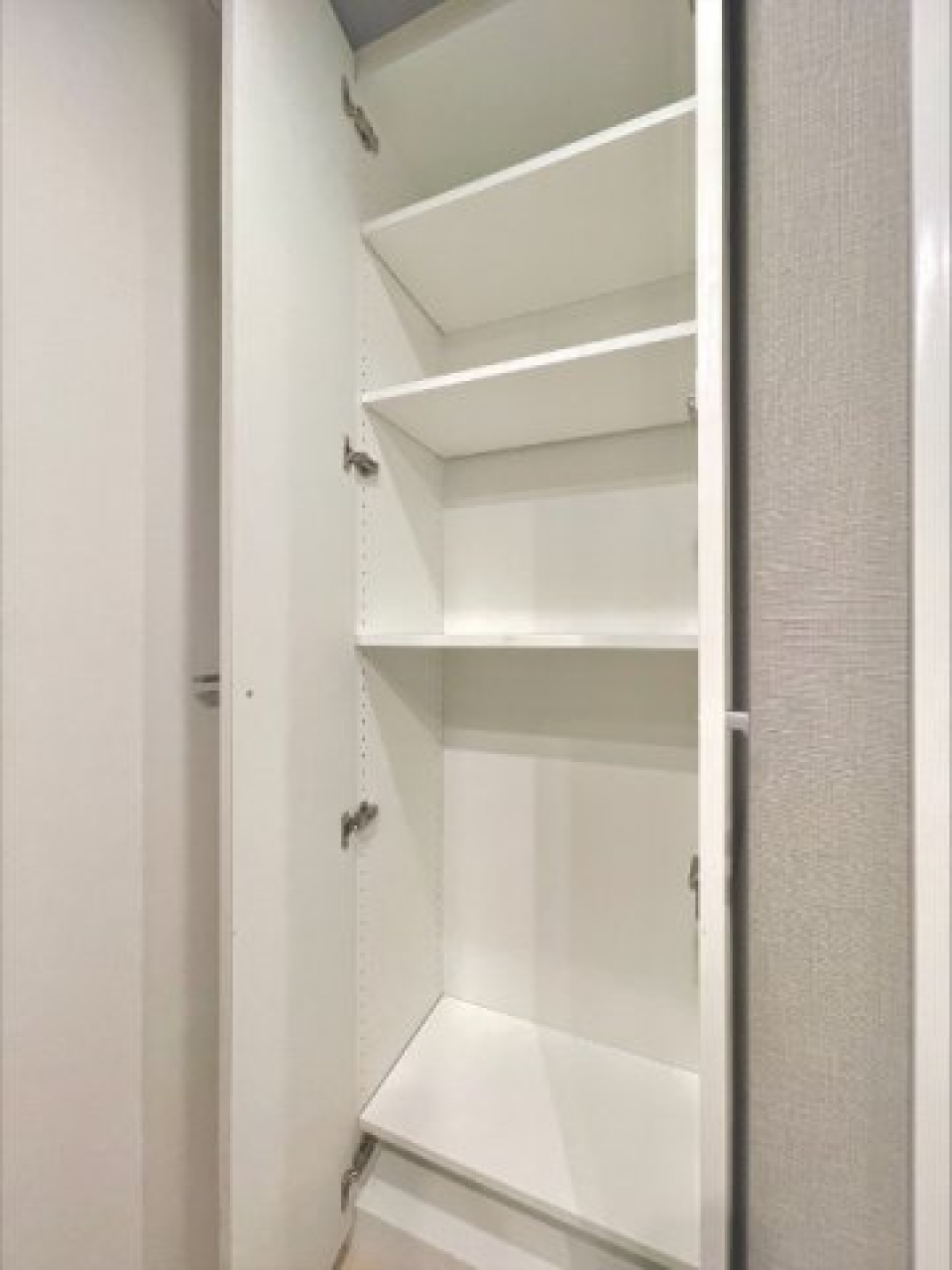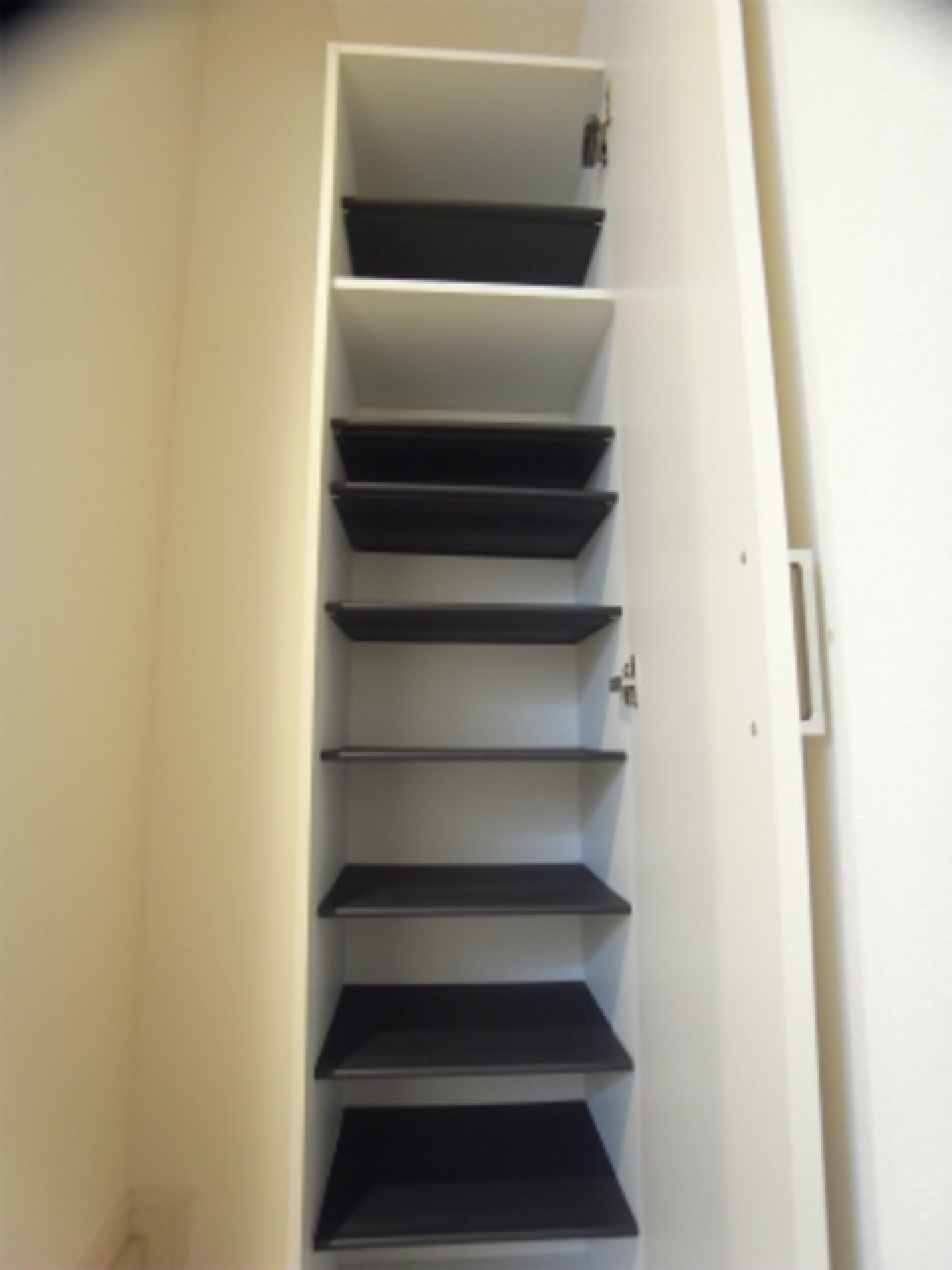 え付けのクローゼット等はないので、空間下のスペースにはラックや収納ケースなどを並べるのが良さそうです。階段部分にもちょっとした小物を置けます。