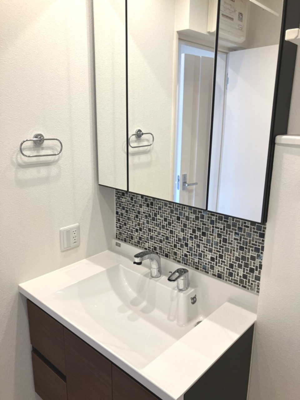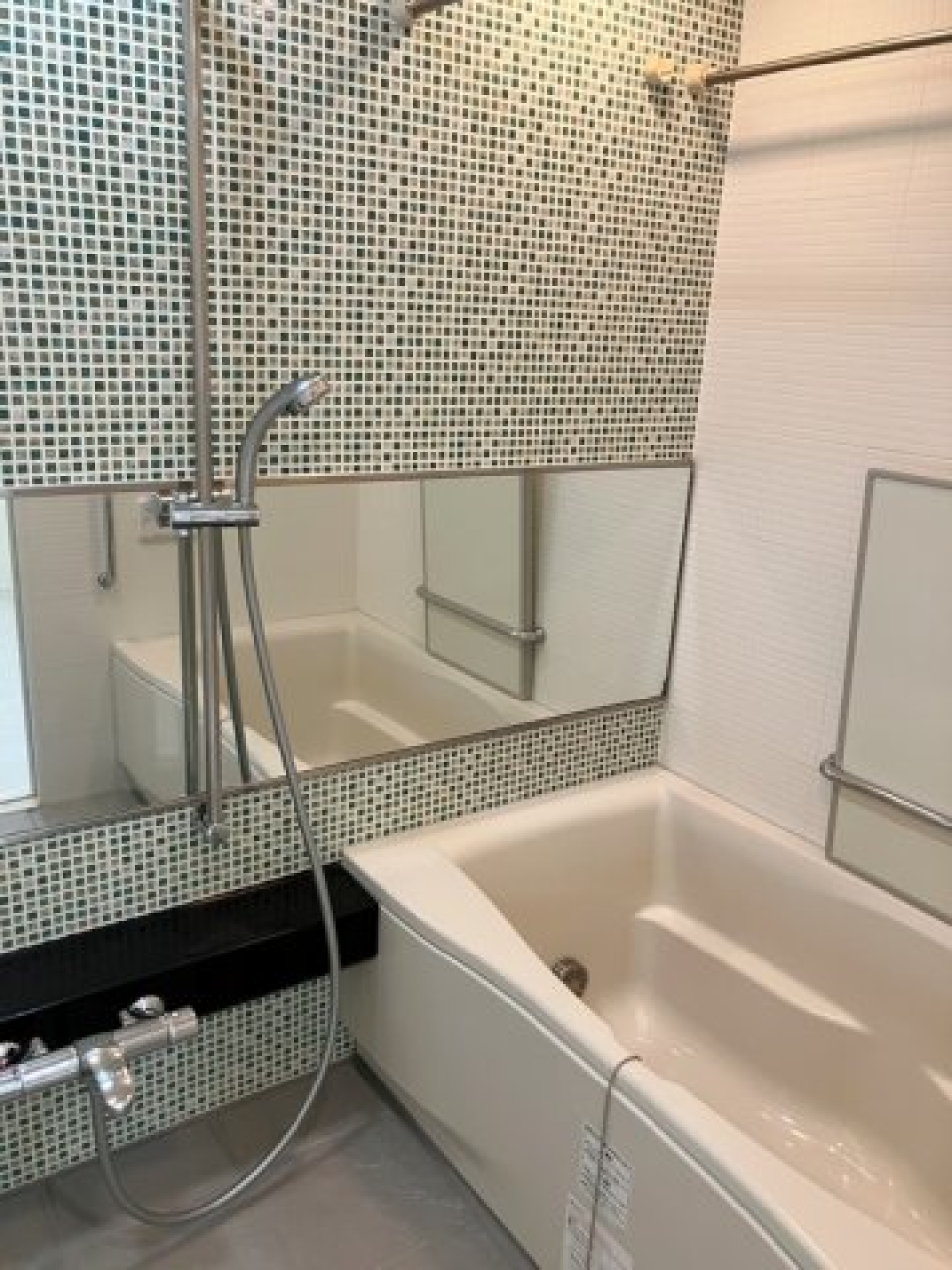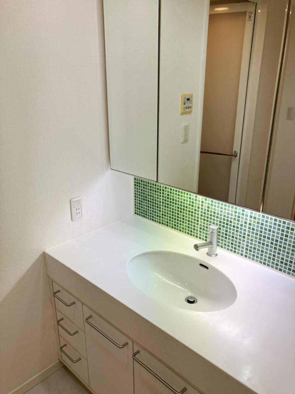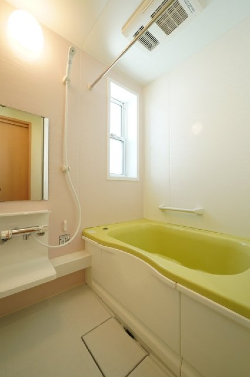特筆すべきは、カラータイルのアクセントが可愛いバスルーム。