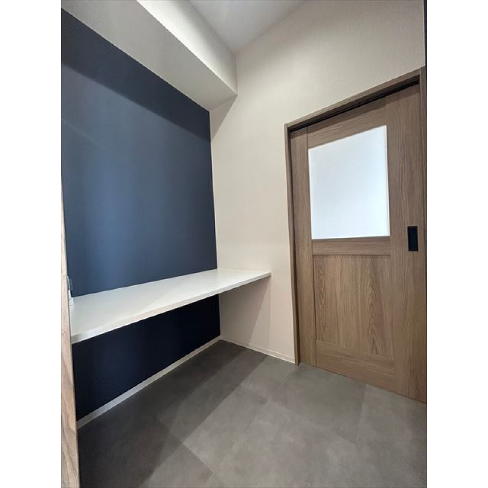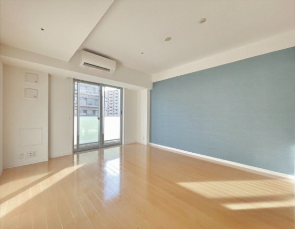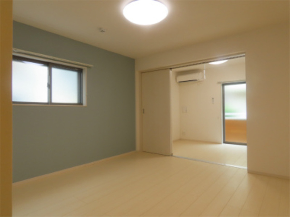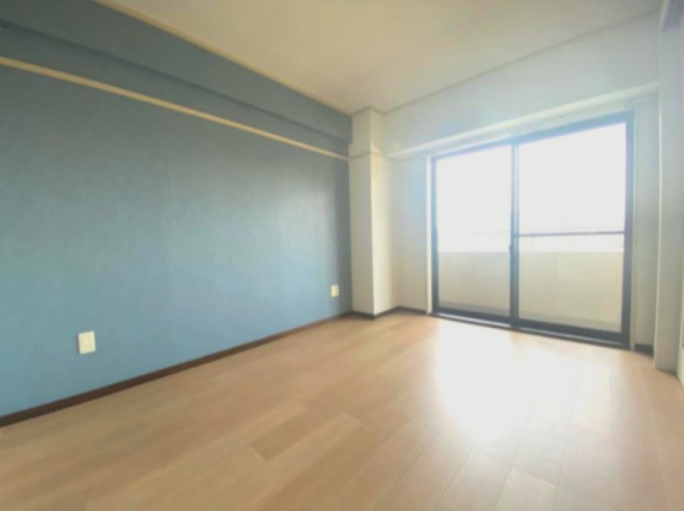 洋室は5.9帖。壁は心を落ち着かせるブルーで装飾され、リラックスした雰囲気を作り出しています。