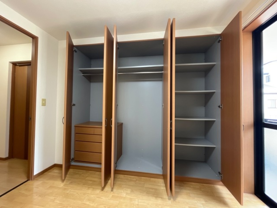 クローゼットも備え付けられているので、洋服や荷物の収納に困ることもありません。