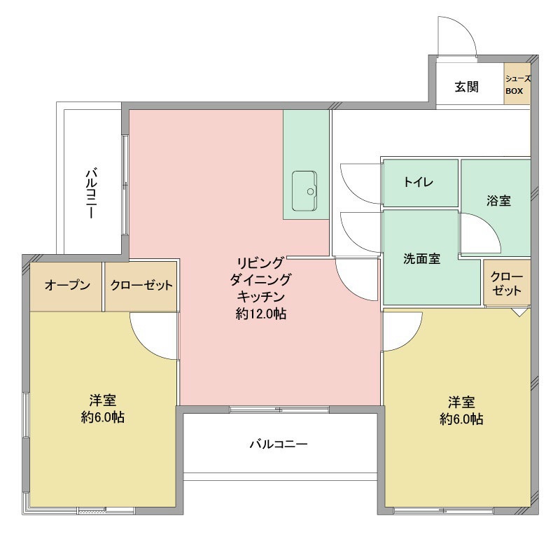 リビングを挟んで6帖洋室が2つ。こちらもブロックを組み合わせたようななんかかっこいい間取りです。かっこいいだけでなく、すべてのお部屋がリビングにつながっているので家族の会話が増えそうですね。