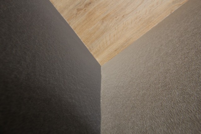 天井にはナチュラルな木目、お部屋全体が無彩色でまとめられつつもしっかりと重厚感があり、何も飾る必要はない。