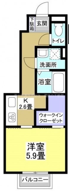 キッチンは、廊下の部分にあり、広さは2.6帖です。