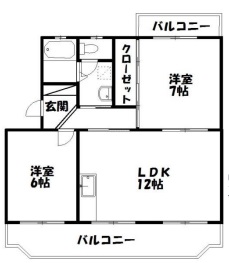 LDKは12帖と広めで、大きめのバルコニーも付いています。無料でインターネットが使えたり、部屋外に専用の物置があったり、追い炊き機能まで付いていたりと2LDKにしては良いコストパフォーマンスのお部屋です!