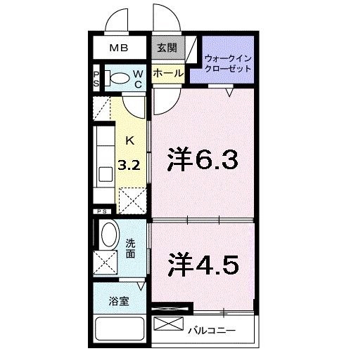 間取り表記は1DKになりますが、2Kと表記するべきか...。