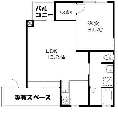 無骨だけどセンスを感じる1LDKで、バルコニー付なので収納にも困りません。