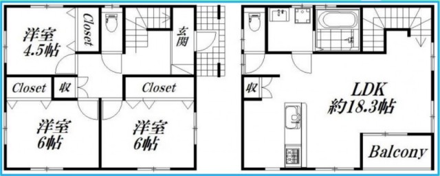 お部屋は3LDKで1階は洋室3部屋、2階はリビングとキッチン