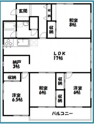 部屋数も4つあるうえ、リビングも17帖もあって広々としています。
