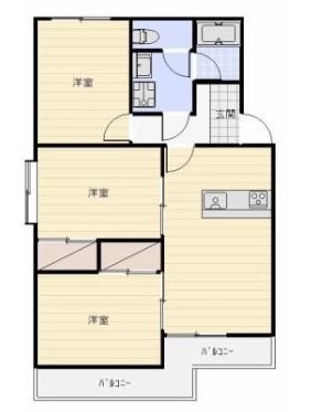 洋室は3室あり、すべて6帖の広さとなっています。