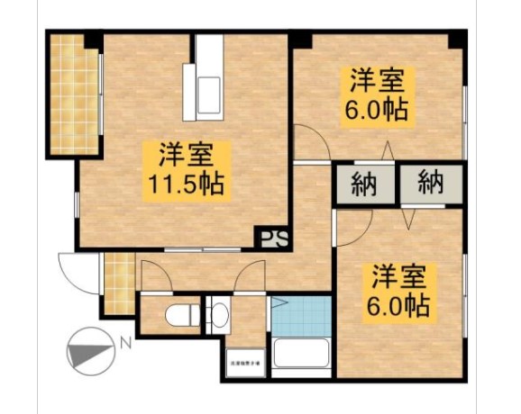 カップルや若いファミリーのぴったりな間取りの2LDK。