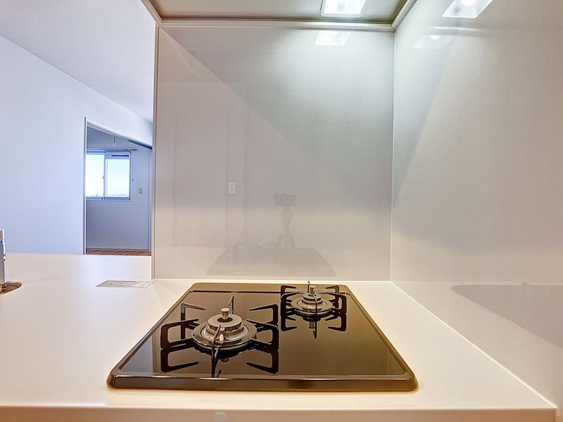 キッチンは、便利なシステムキッチンで3口のコンロとグリルが付いております。時短で料理ができるのは、日々忙しい私たちにとって嬉しいですね♪