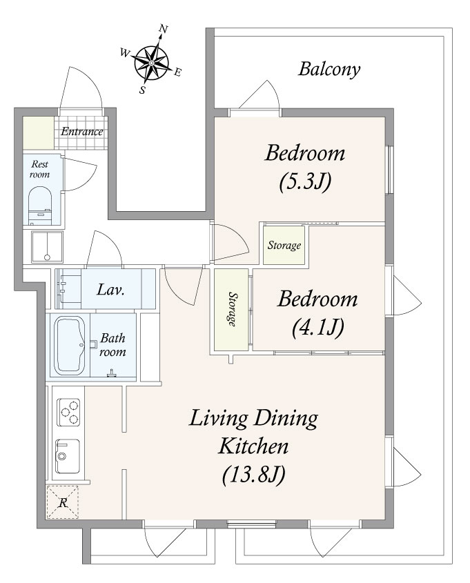 寝室は二つあるので、2人暮らしや3人暮らしもできます。