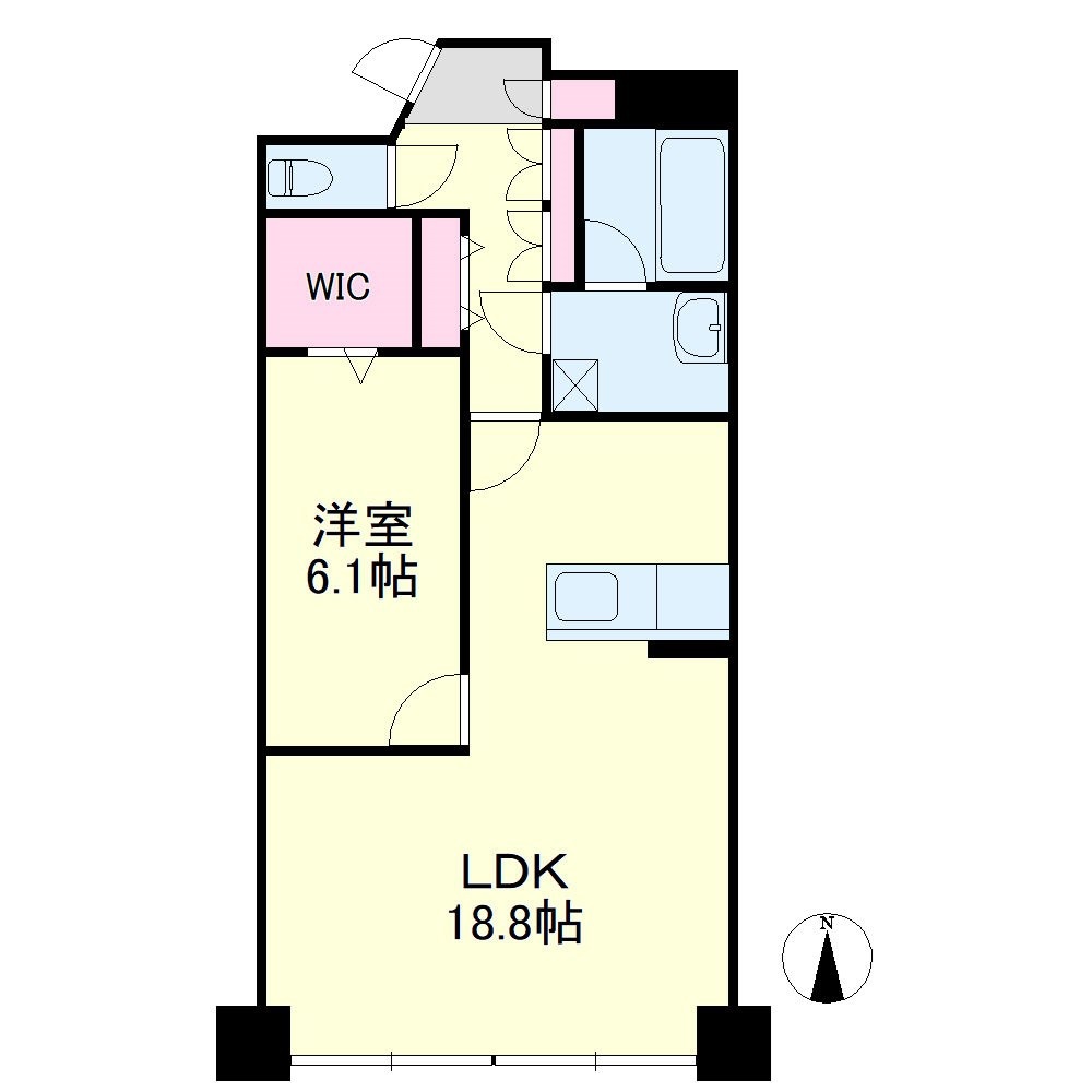 6.1帖のお部屋にもエアコンがあり、ウォークインクローゼットで収納力も抜群です。